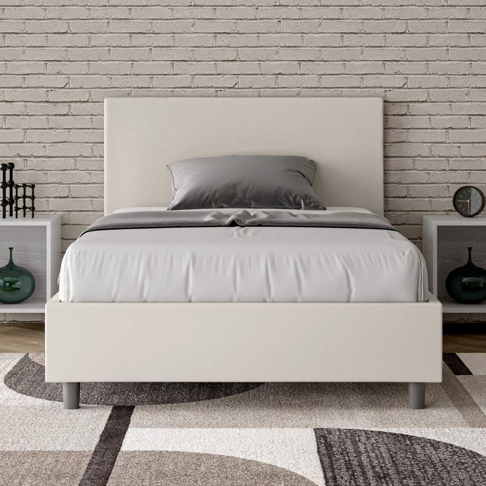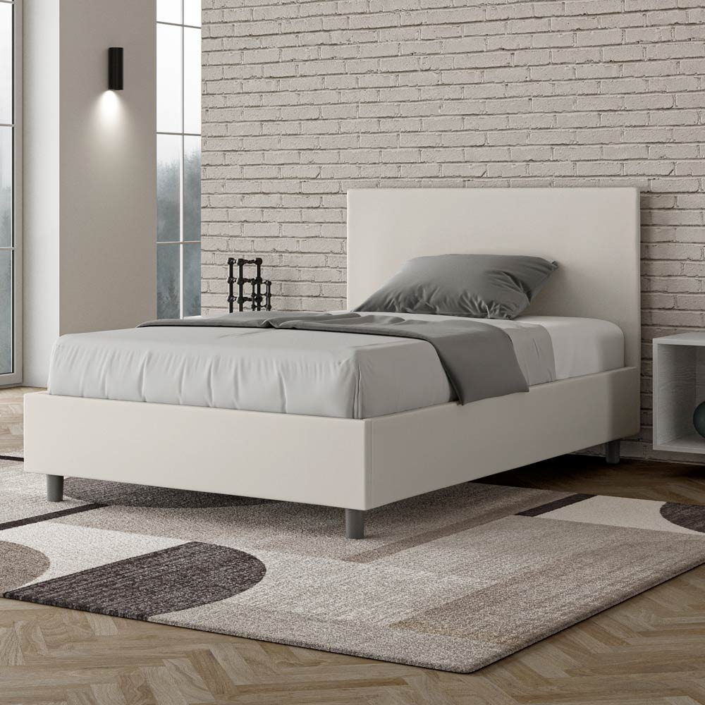 Gepolstertes Queensize-Bett (120 x 200 cm) aus Spanplatten , bezogen mit Kunstleder , vollständig in Italien hergestellt. Dieses Queensize-Bett mit gepolstertem Bettrahmen ist ein Inbegriff von schlichter Eleganz. Mit seinem Kopfteil aus Kunstleder fügt es sich harmonisch in jedes Zimmer ein und verleiht ihm einen Hauch von Klasse und Luxus – typisch italienisch. Die Pflege ist kinderleicht: Einfach mit einem Mikrofasertuch abwischen, um die Schönheit des Bettes dauerhaft zu erhalten.