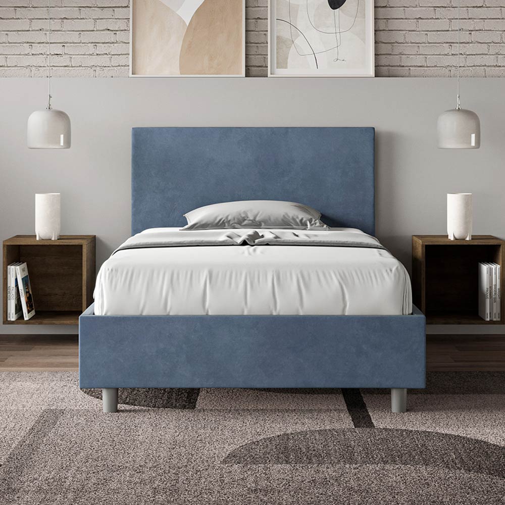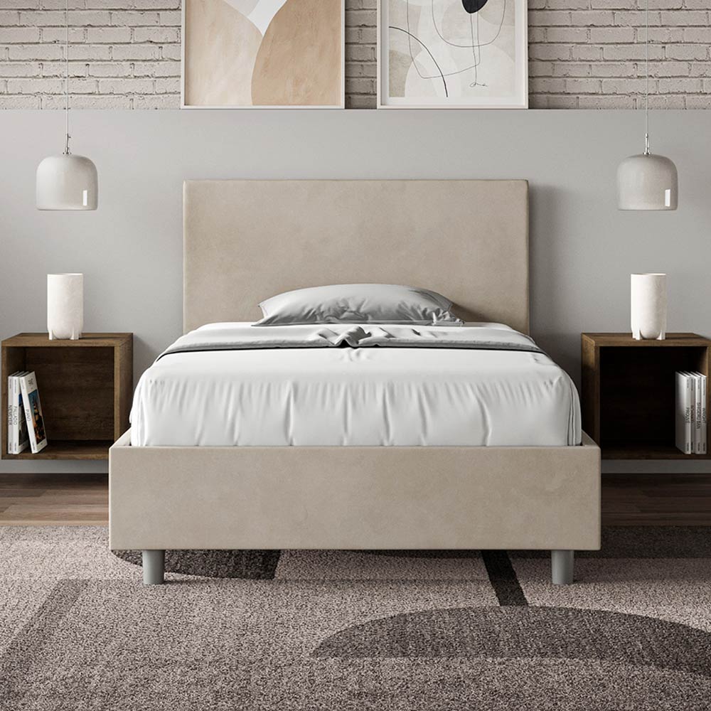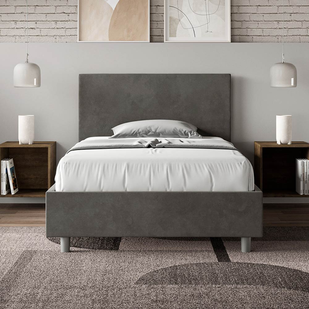 Gepolstertes Queensize-Bett (120 x 200 cm) aus Spanplatten mit Mikrofaserbezug , vollständig Made in Italy. Dieses Queensize-Bett mit gepolstertem Bettrahmen ist ein Inbegriff von schlichter Eleganz. Das Kopfteil aus Mikrofaser fügt sich harmonisch in jedes Zimmer ein und verleiht ihm einen Hauch von Klasse und Luxus – typisch italienisch. Die Pflege ist kinderleicht: Einfach mit einem Mikrofasertuch abwischen, um die Schönheit des Bettes dauerhaft zu erhalten.