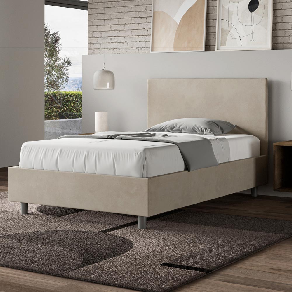 Queensize-Bett (120 x 200 cm), gepolstert und mit Mikrofaser bezogen, hergestellt in Italien