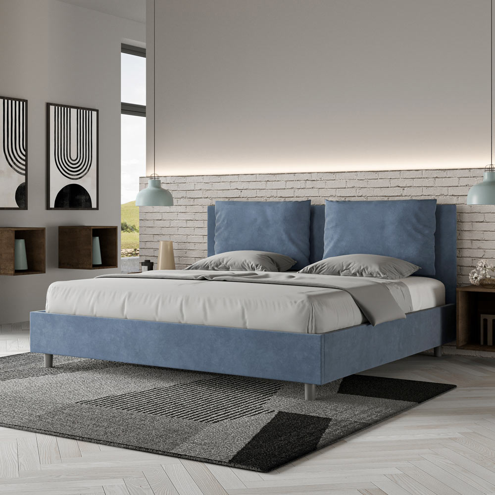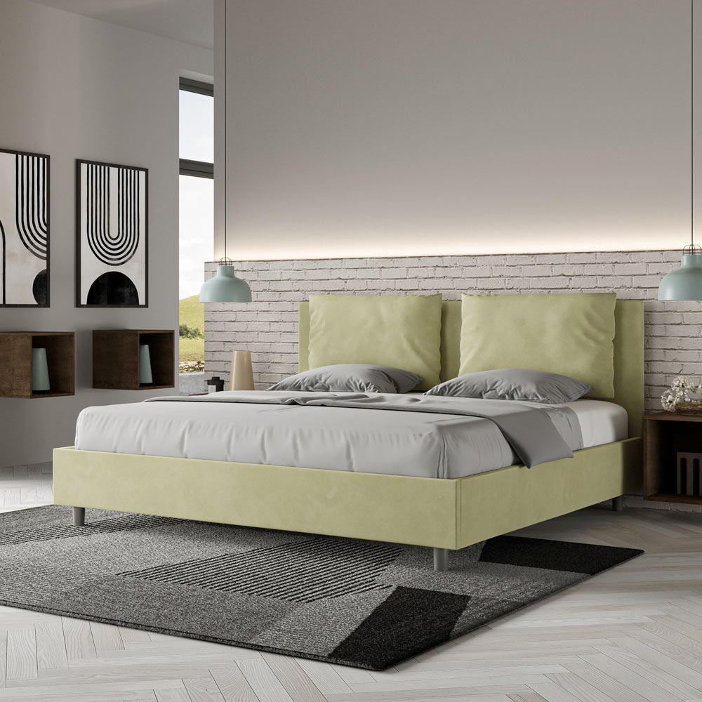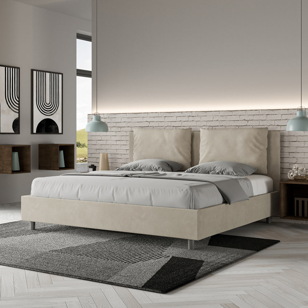 Kingsize-Bett (180 x 200 cm), gepolstert und mit Mikrofaser bezogen, hergestellt in Italien