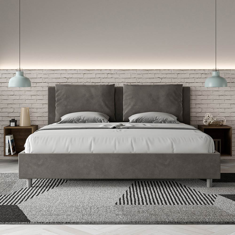 Kingsize-Bett 180x200 cm, gepolstert aus Melaminplatten und mit Mikrofaser bezogen, vollständig in Italien hergestellt. Dieses Kingsize-Bett mit gepolstertem Rahmen vereint die Vorteile eines Polsterbetts: Komfort, modernes Design, Funktionalität und optimale Raumnutzung . Das breite, gepolsterte Kopfteil bietet eine gemütliche Leseecke oder einen bequemen Fernsehplatz und wertet Ihr Schlafzimmer auf. Das elegante und stilvolle Bett ist mit Mikrofaser bezogen und lässt sich daher schnell und einfach reinigen: Wischen Sie es einfach mit einem Mikrofasertuch ab, um es strahlend sauber zu halten.