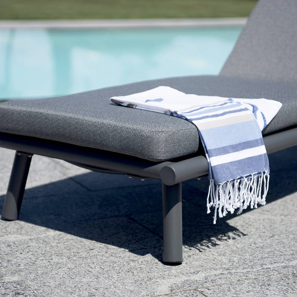 Diese Liege vereint Komfort, Eleganz und Langlebigkeit und ist damit die perfekte Ergänzung für jeden Außenbereich – für eine stilvolle Entspannungsecke. Der Aluminiumrahmen sorgt für Leichtigkeit und Stabilität und macht sie ideal für den täglichen Gebrauch im Garten, auf der Terrasse oder am Pool.