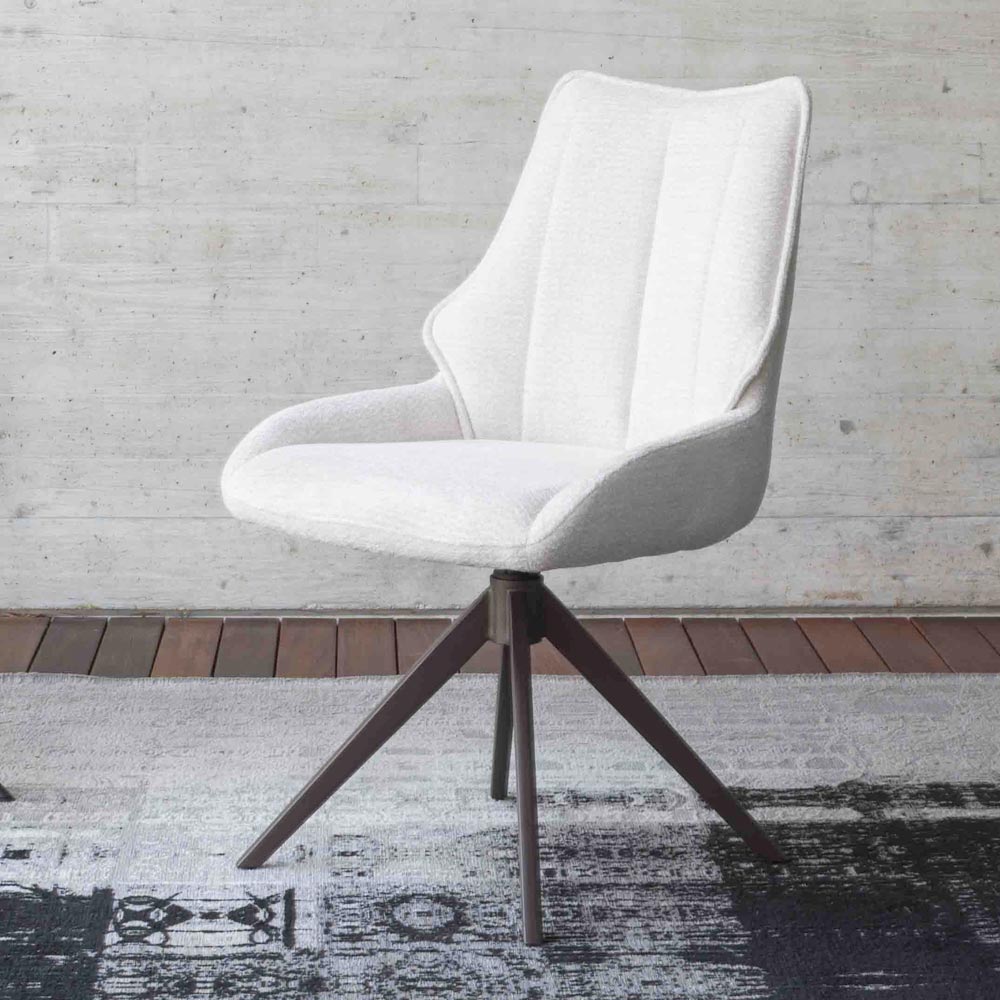 Dieser Stuhl vereint zeitlose Eleganz mit hohem Sitzkomfort . Die weichen, geschwungenen Linien der Rückenlehne und der gepolsterten Sitzfläche ergeben eine raffinierte, einladende Form, die jeden Raum aufwertet. Der helle, angenehm weiche Stoffbezug verleiht dem Stuhl Leichtigkeit und Eleganz , während das vierbeinige, pyramidenförmige Metallgestell für Stabilität und ein modernes Design sorgt.