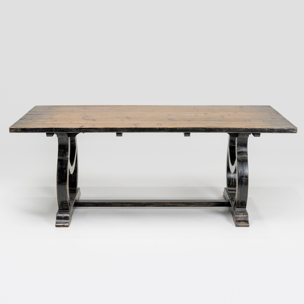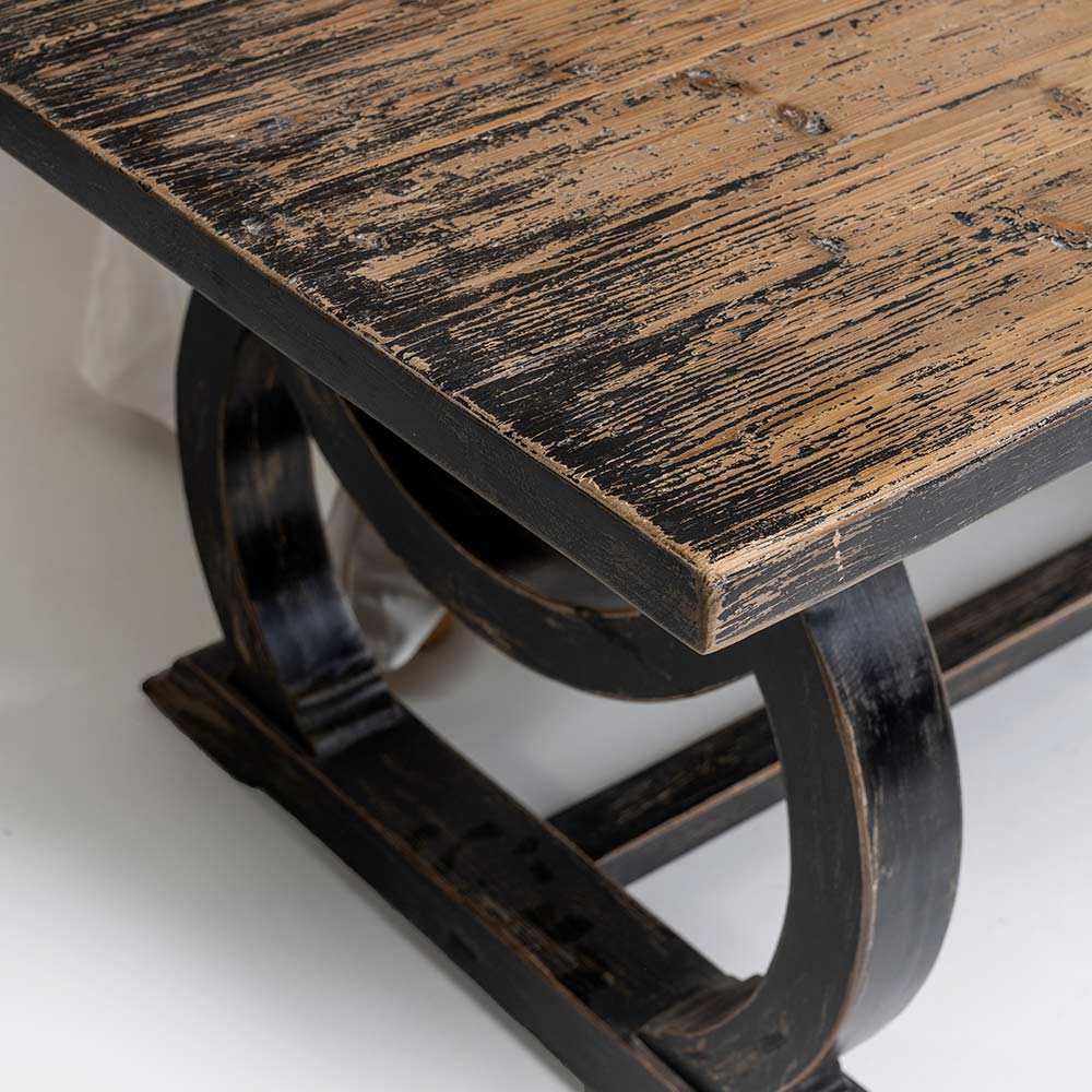 Dieser Tisch eignet sich ideal für rustikale, Shabby-Chic- oder Landhaus-Einrichtungen und verleiht Ihrem Esszimmer oder Ihrer Küche eine persönliche Note. Er bietet eine große, funktionale Fläche für geselliges Beisammensein im Alltag.