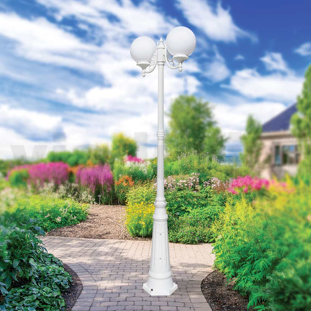 Gartenlampe mit Struktur aus Aluminiumdruckguss und Diffusor in Opalacrylkugel , vollständig in Italien hergestellt.