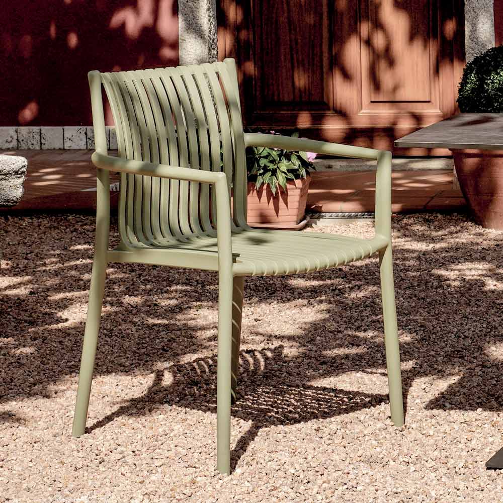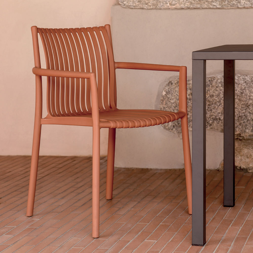 Das Material ist UV-beständig und garantiert so leuchtende Farben und eine unveränderte Oberfläche auch nach längerer Sonneneinstrahlung. Dank seines modernen, geradlinigen Designs fügt sich dieser Stuhl mühelos in verschiedenste Umgebungen ein – von Gärten und Terrassen bis hin zu gewerblichen Räumlichkeiten wie Bistros und Hotels.