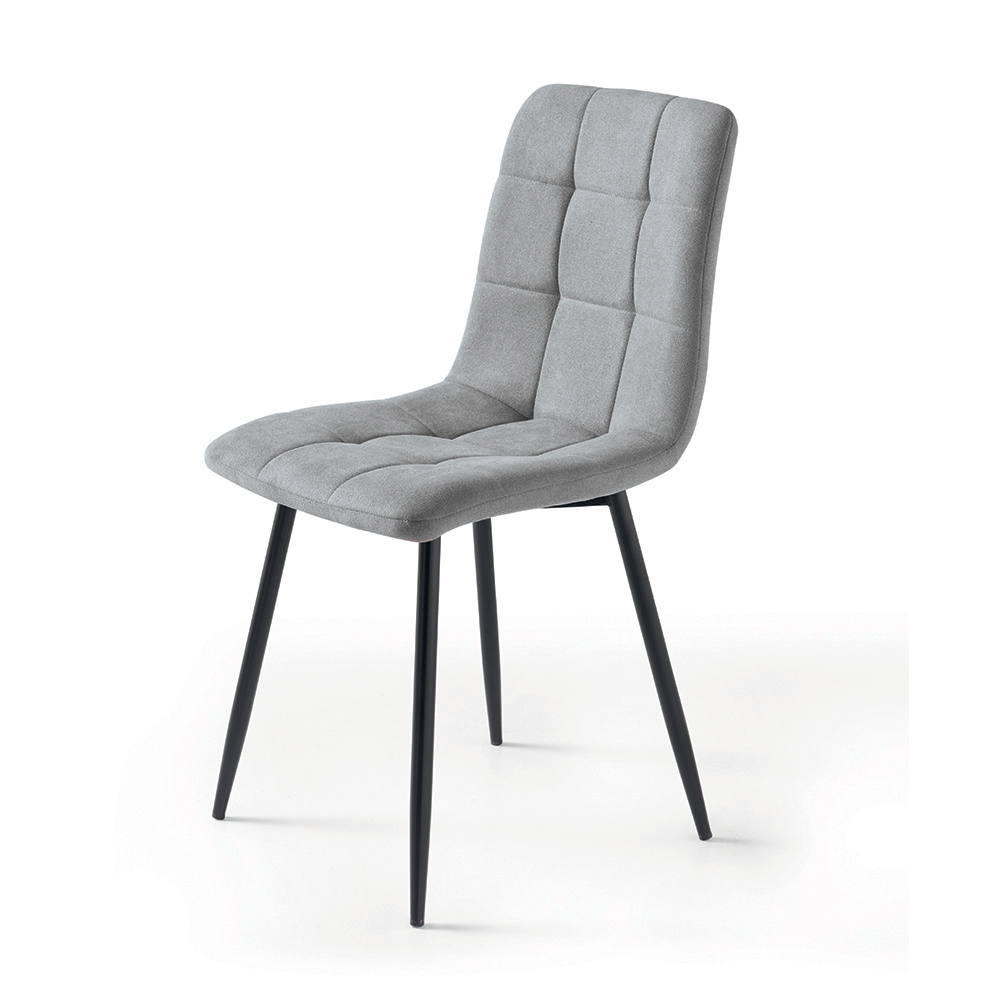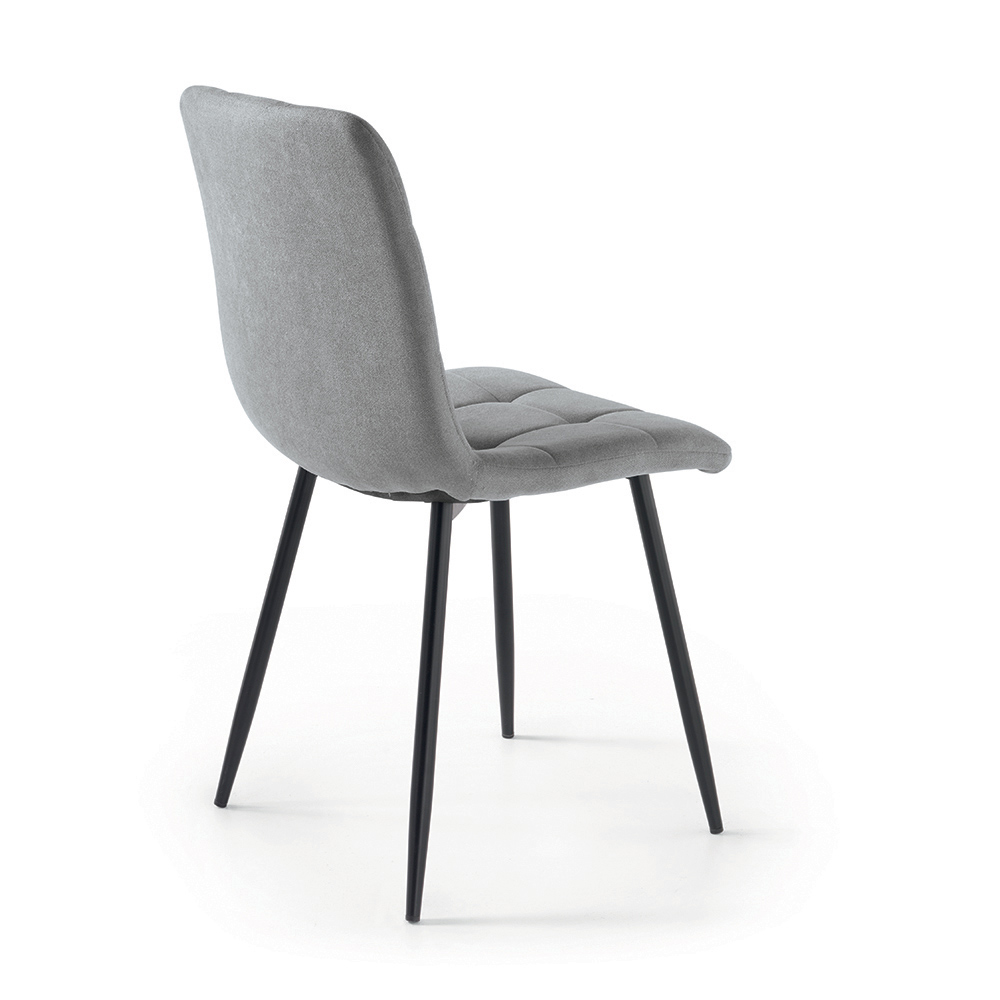 Ein elegantes Set aus vier modernen Polsterstühlen, die Ihr Esszimmer , Ihre Küche oder Ihr Wohnzimmer stilvoll einrichten. Der weich gepolsterte Stoffbezug sorgt für Komfort und ein einladendes Sitzgefühl, während das lackierte Metallgestell Stabilität und Langlebigkeit gewährleistet.