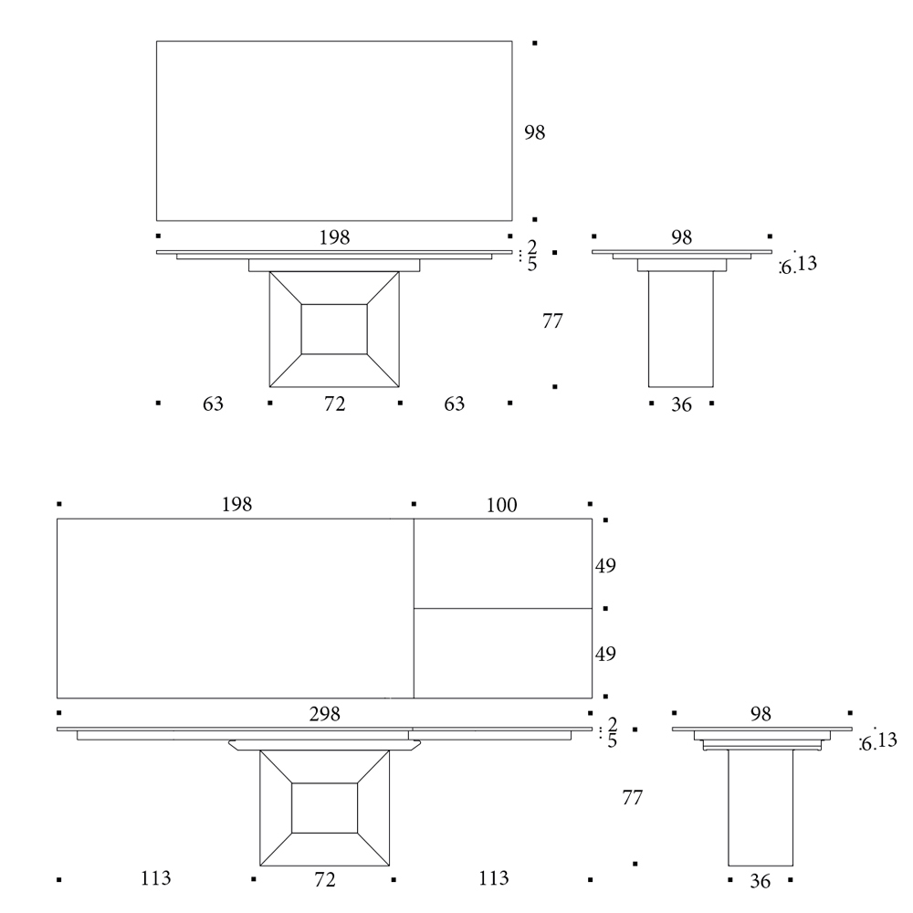 Die Tischplatte ist mit einem Metallrahmen, einem Teleskopmechanismus und synchronisierter Öffnung ausziehbar. Die Ausziehfunktion lässt sich wie ein Buch aufklappen und verläuft dabei nahtlos.