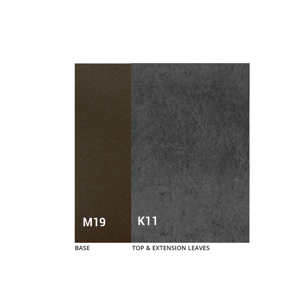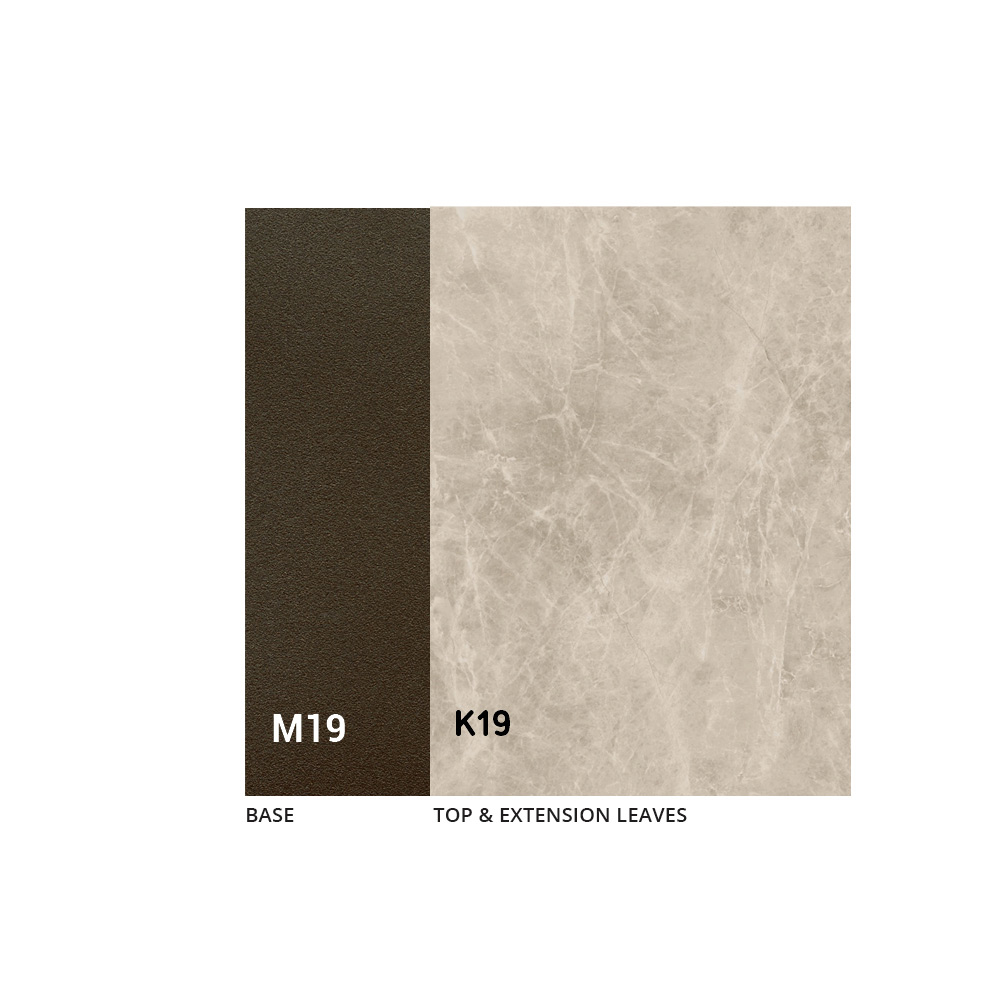 Die Tischplatte ist mit einem Metallrahmen, einem Teleskopmechanismus und synchronisierter Öffnung ausziehbar. Die Ausziehfunktion lässt sich wie ein Buch aufklappen und verläuft dabei nahtlos.