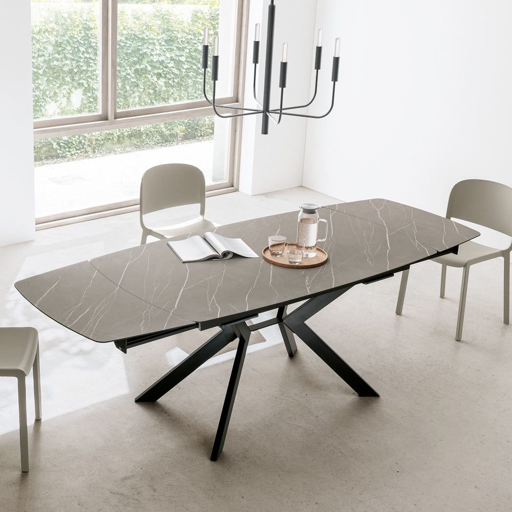 Eleganz und Funktionalität vereinen sich in diesem ausziehbaren Tisch aus HPL und Metall . Er wurde für alle entworfen, die ein Möbelstück mit starker optischer Wirkung, aber äußerster Funktionalität suchen.
