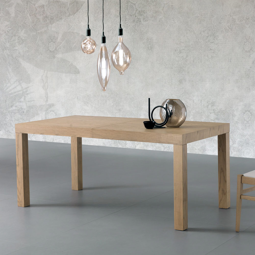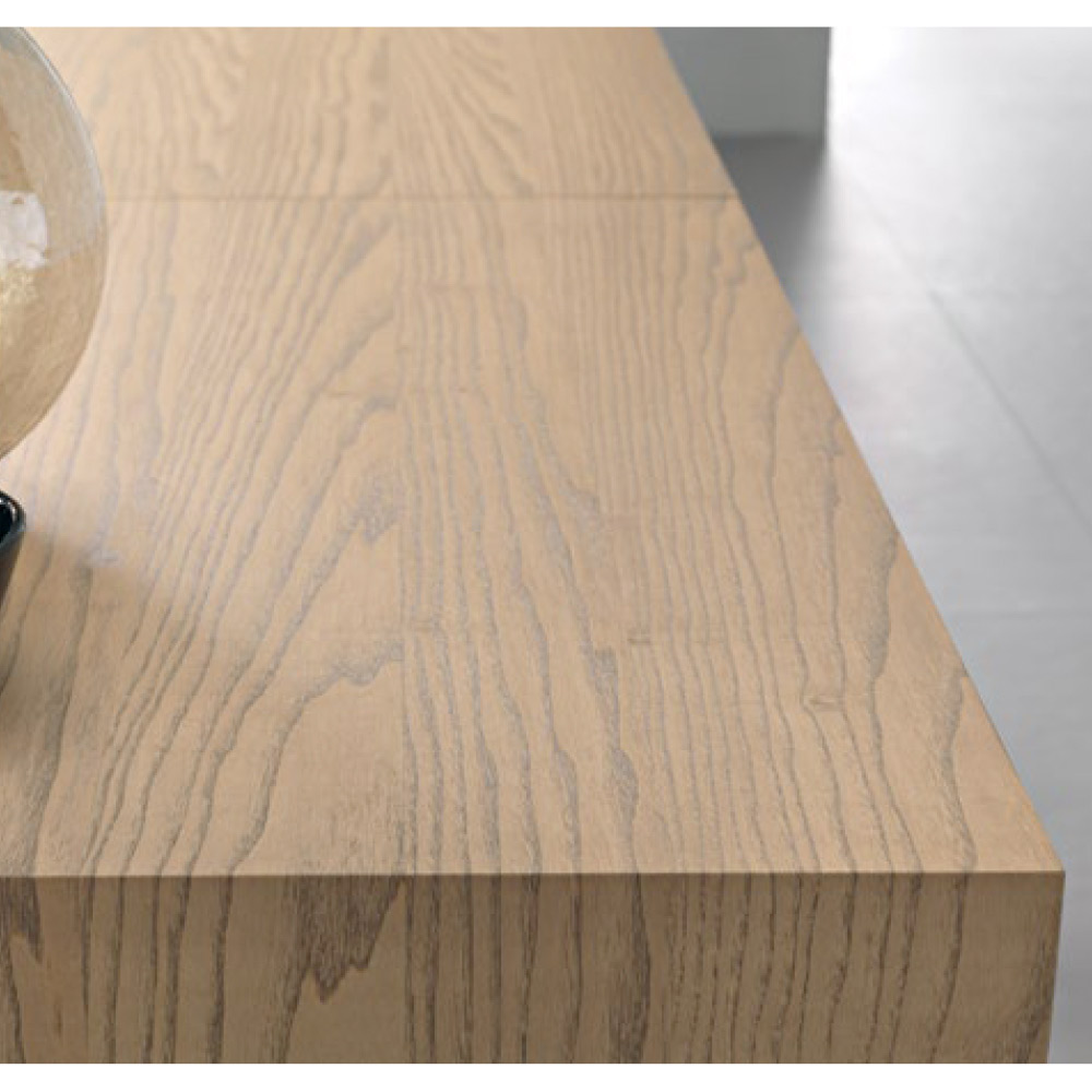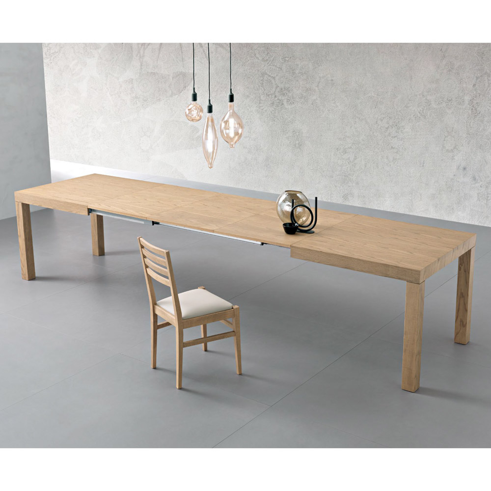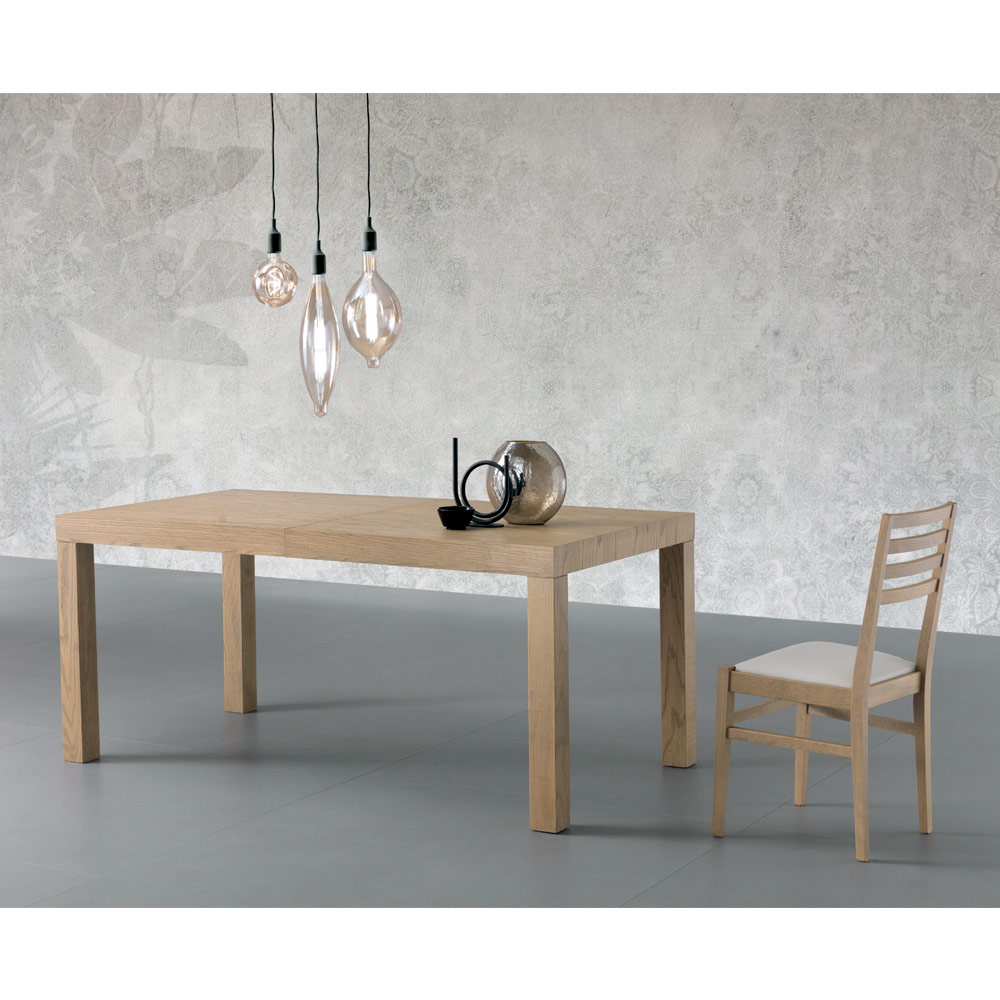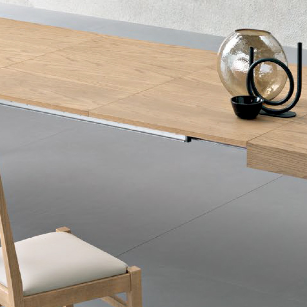 Ausziehbarer rechteckiger Tisch mit Eschenfurnierplatte. 80 mm dick, klappbar.