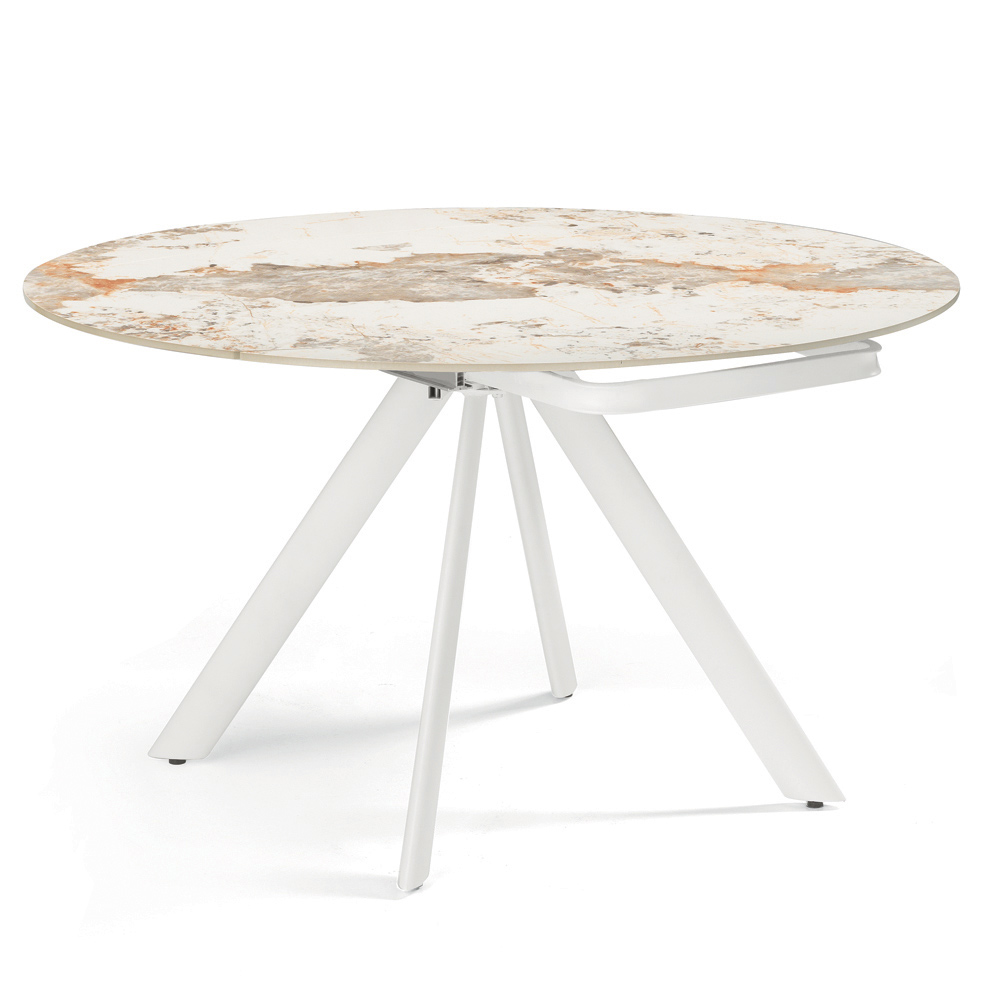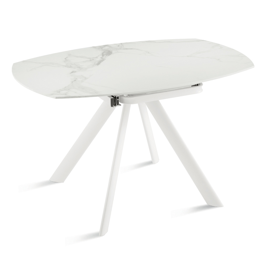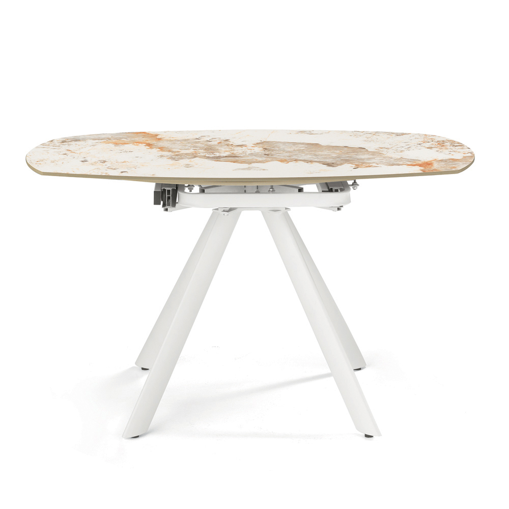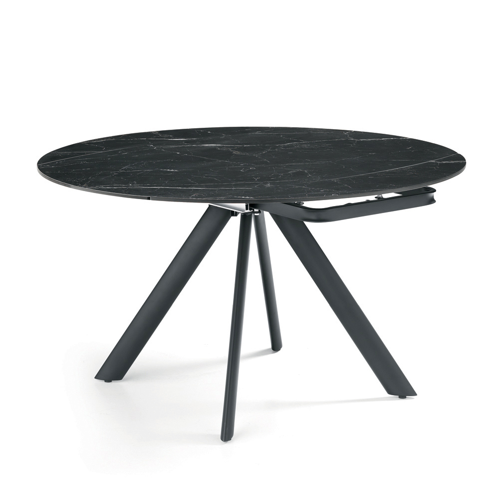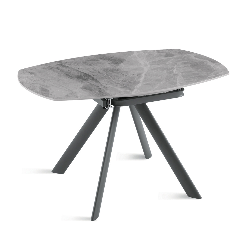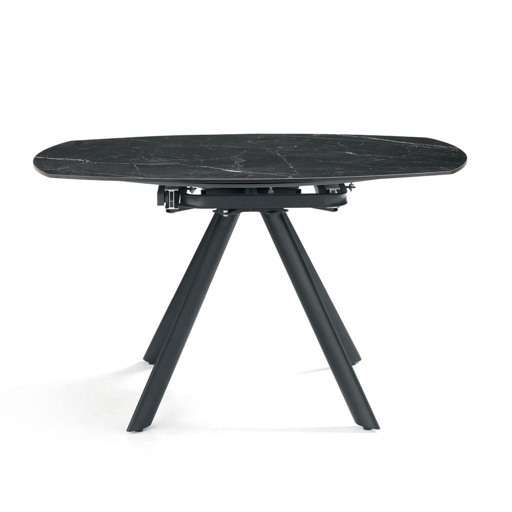 Eleganter , ausziehbarer Esstisch, der Ihr Wohn- oder Esszimmer stilvoll aufwertet. Die Tischplatte aus Sinterstein in Marmoroptik bietet eine strapazierfähige, edle und pflegeleichte Oberfläche – perfekt für den täglichen Gebrauch.