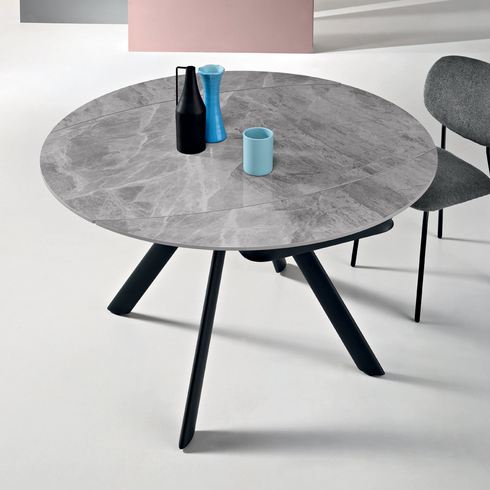 Dank der praktischen Drehplatte lässt sich der Tisch von rechteckig zu rund verwandeln und passt sich so mühelos unterschiedlichen Raum- und Gesellschaftsbedürfnissen an. Die beiden 24 cm langen Verlängerungsplatten vergrößern die Tischfläche und machen den Tisch ideal für den täglichen Gebrauch sowie für gesellige Runden mit Freunden und Familie.