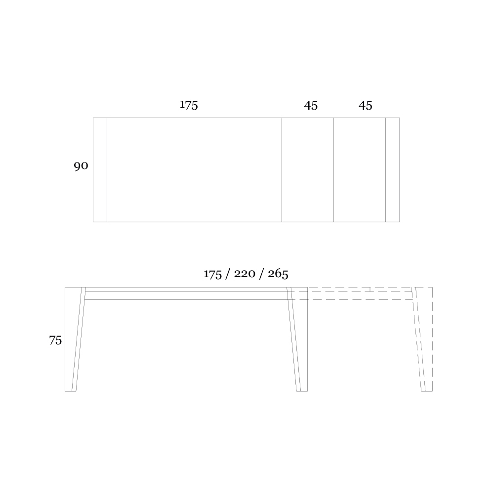 Länge: 175/220/265 cm x Tiefe: 90 cm x Höhe: 75 cm - 2 Verlängerungen