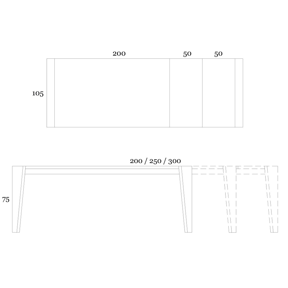 Länge: 200/250/300 cm x Tiefe: 105 cm x Höhe: 75 cm - 2 Verlängerungen