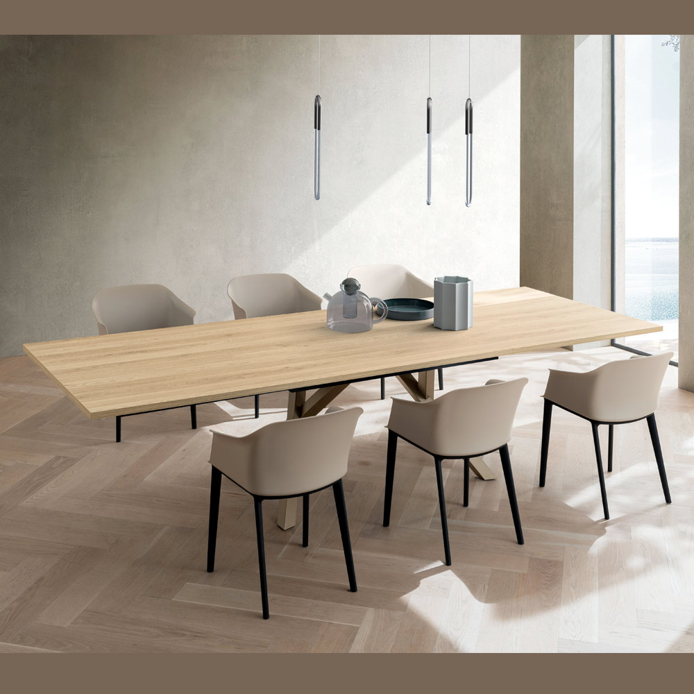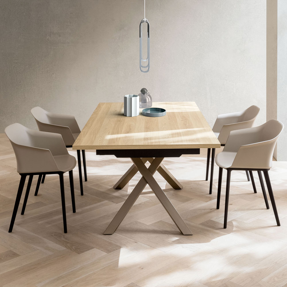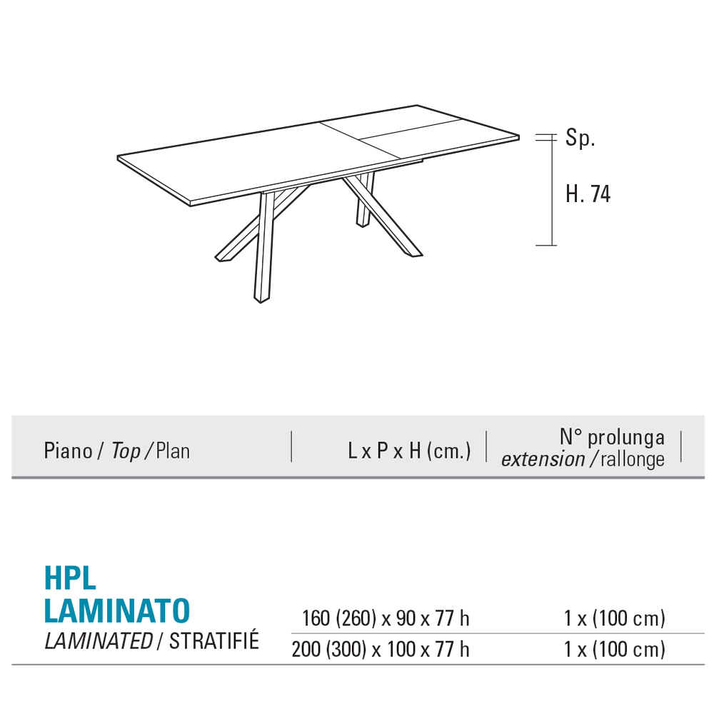 Die HPL- Platte ist perfekt für den täglichen Gebrauch, ohne dass die Ästhetik darunter leidet. Dank des integrierten Ausziehmechanismus lässt sich der Tisch leicht ausziehen, um bequem mehr Gäste unterzubringen, und wird zum perfekten Protagonisten für Mittag- und Abendessen mit der Familie und Freunden.
