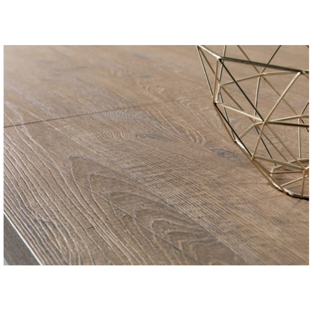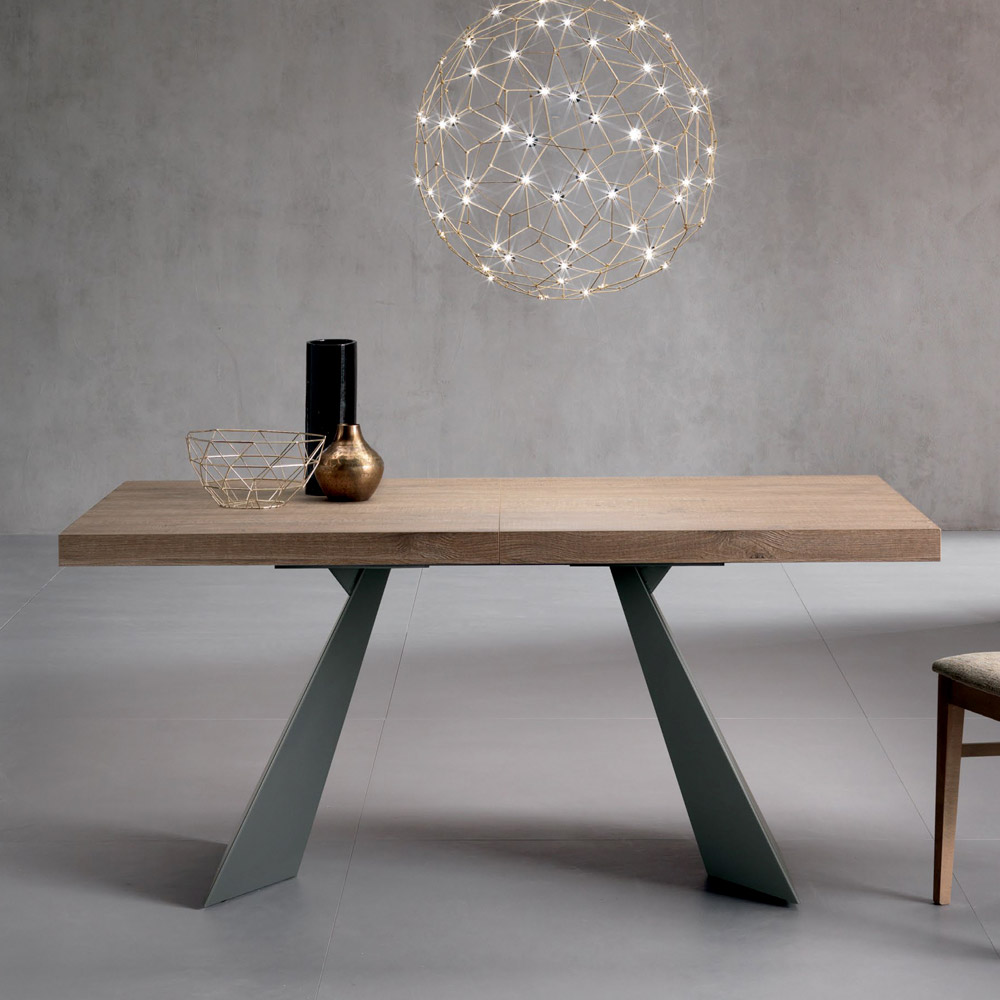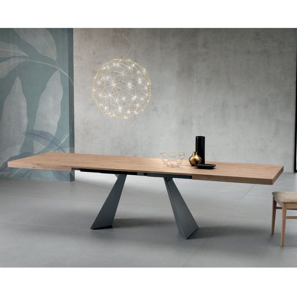 Dieser Tisch vereint architektonische Kreativität und zeitgenössische Eleganz und verwandelt jeden Raum in einen stilvollen Ort . Die Tischplatte in Eichenholzoptik bringt die natürliche Schönheit der Maserung perfekt zur Geltung.