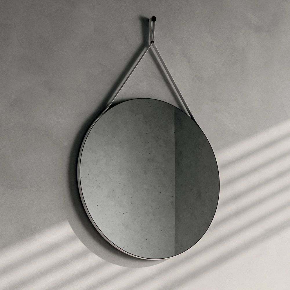 Der runde Spiegel rundet das Ensemble mit einer dezenten und raffinierten dekorativen Note ab und trägt dazu bei, den Raum optisch zu vergrößern und eine helle und einladende Atmosphäre zu schaffen.