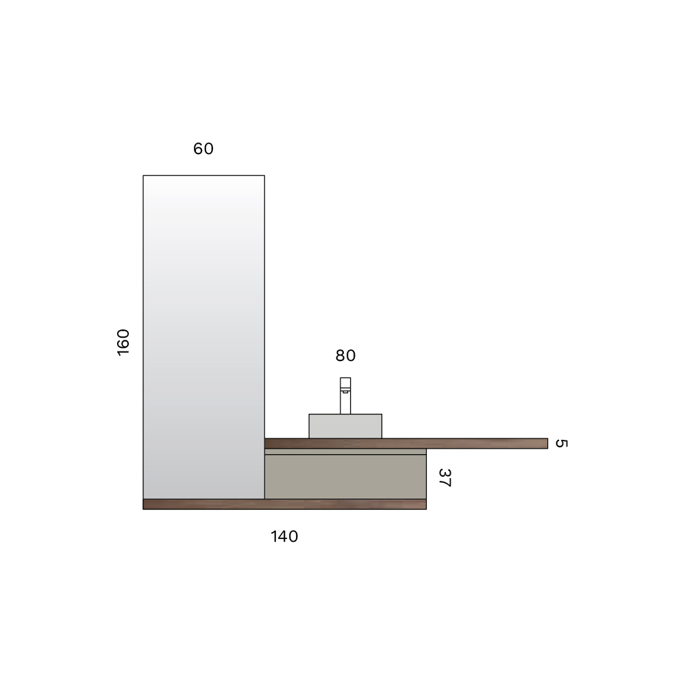 Der 160x60 Spiegel verstärkt die Helligkeit des Raumes, während die LED-Lampe mit Chromfinish für eine präzise und elegante Beleuchtung sorgt, ideal für den Waschbeckenbereich.