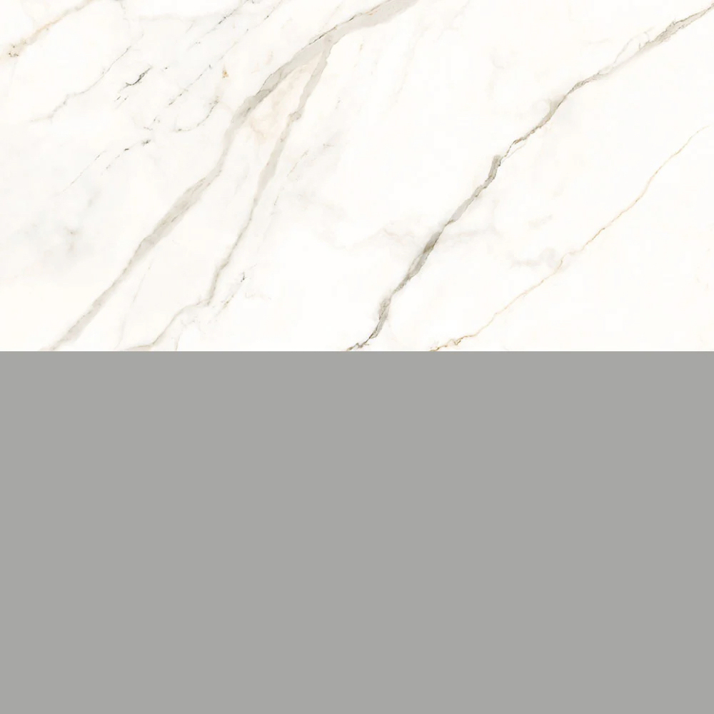 Die integrierte Spültischplatte aus Calacatta Gold-Feinsteinzeug bildet das ästhetische Herzstück der Komposition. Die elegante, leuchtende Maserung erinnert an die Noblesse von Marmor und bietet gleichzeitig Langlebigkeit, Funktionalität und Pflegeleichtigkeit.