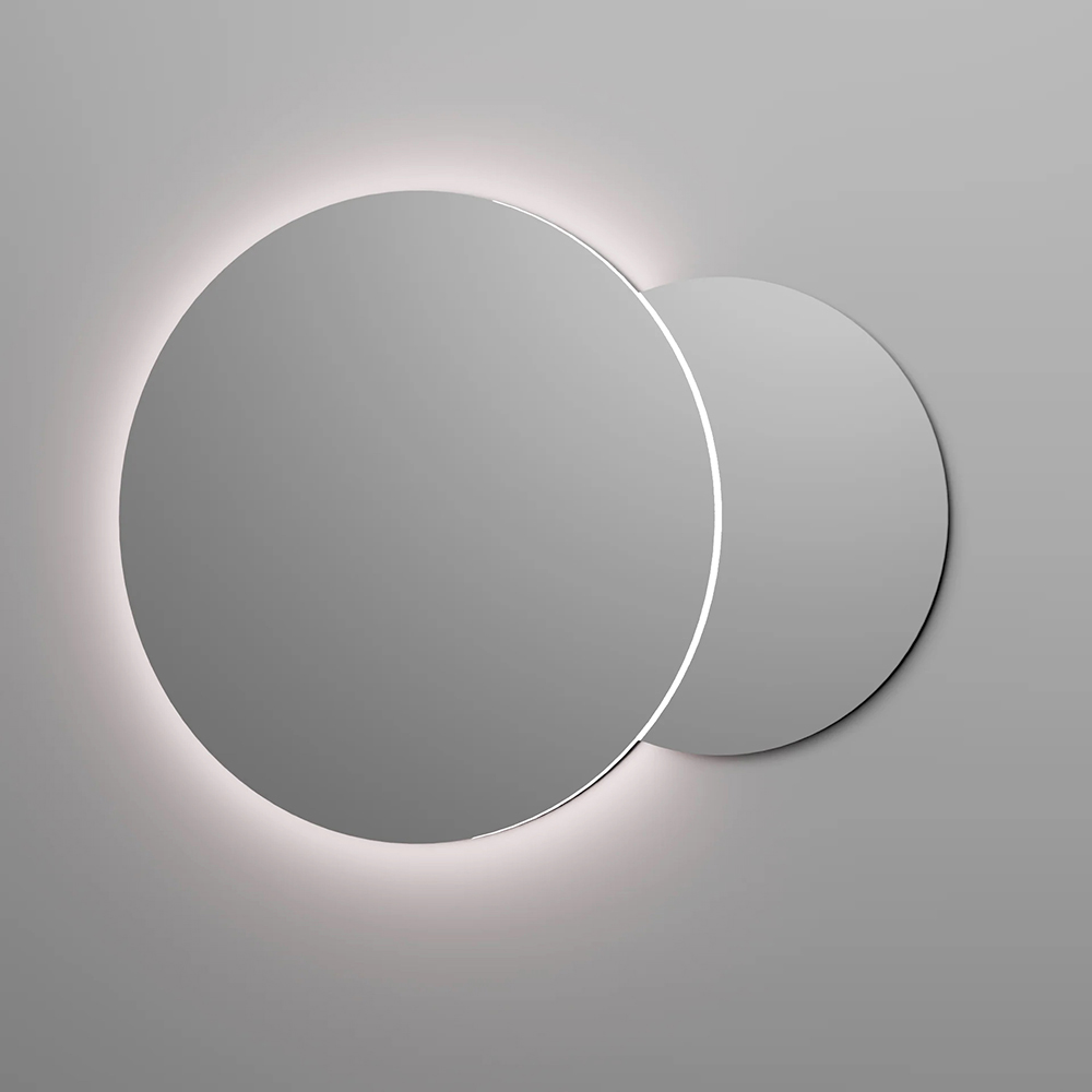 Die beiden hinterleuchteten Spiegel verstärken die Helligkeit des Raumes und schaffen eine elegante und einladende Atmosphäre. Das integrierte Licht definiert die Raumvolumen und trägt zu einem modernen und funktionalen Raum bei.