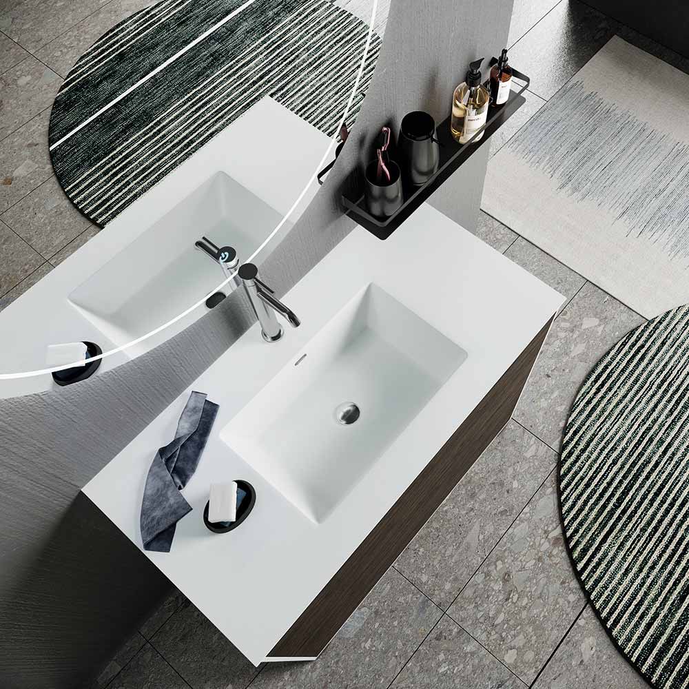 Badezimmerkomposition komplett mit Spiegel, Harzwaschbecken und kratzfestem Sockel. Made in Italy.