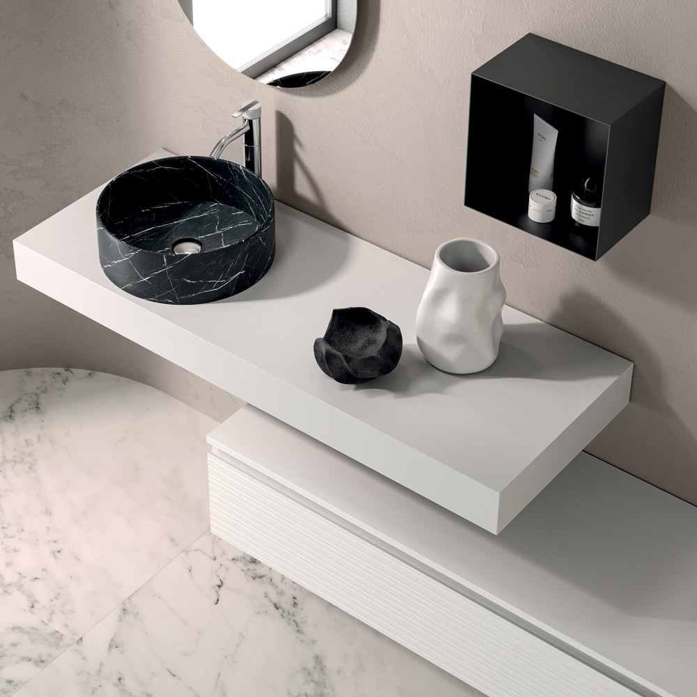 Ein Entwurf für Designer-Badezimmermöbel, der für all jene gedacht ist, die einen eleganten, funktionalen und unverwechselbaren Raum suchen, der das Badezimmer in eine Oase reinen ästhetischen Komforts verwandeln kann.