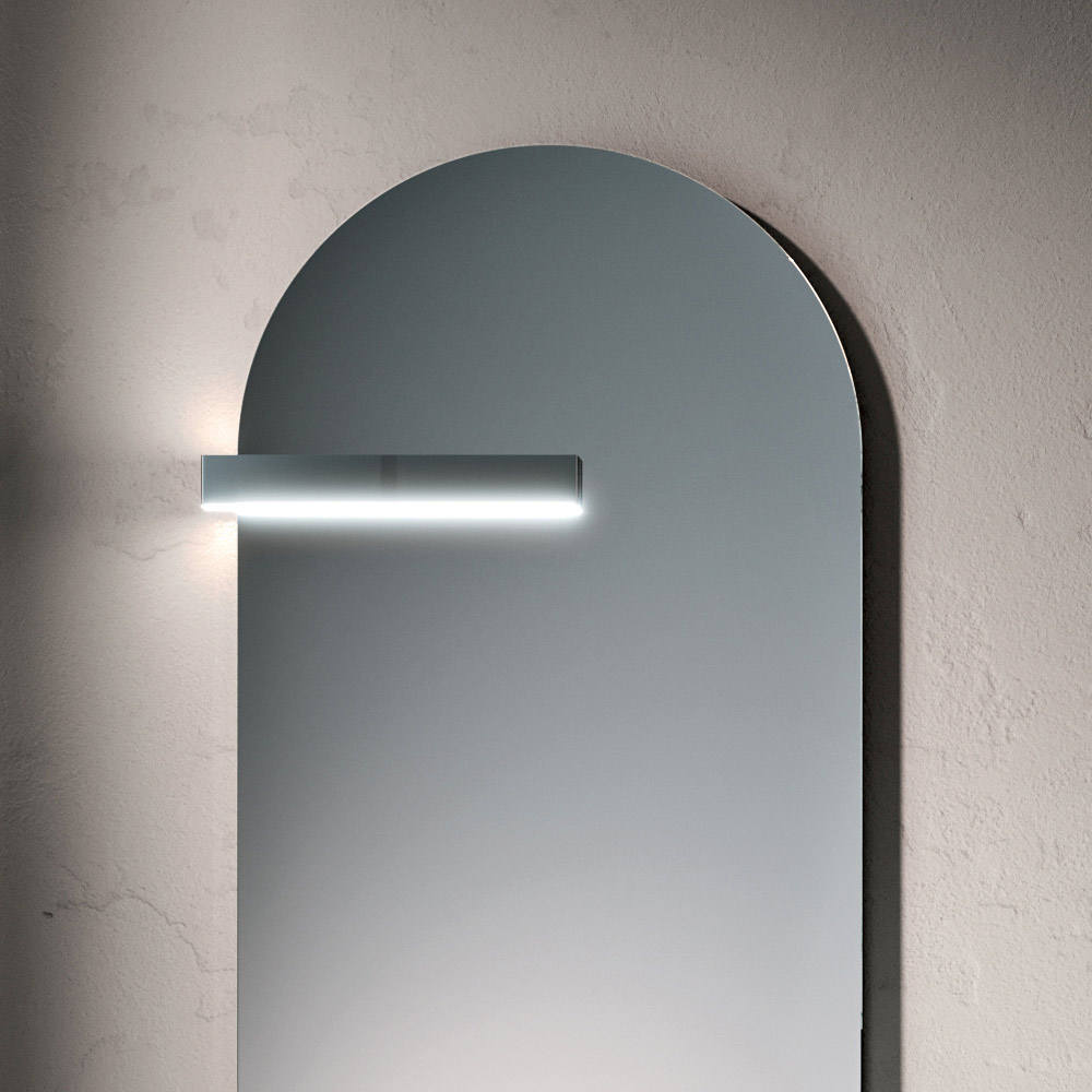 Der Spiegel , kombiniert mit der dekorativen LED-Beleuchtung und der Hängelampe, vervollständigt das Gesamtbild und schafft eine intime und elegante Atmosphäre, ideal für ein modernes und stilvolles Badezimmer.