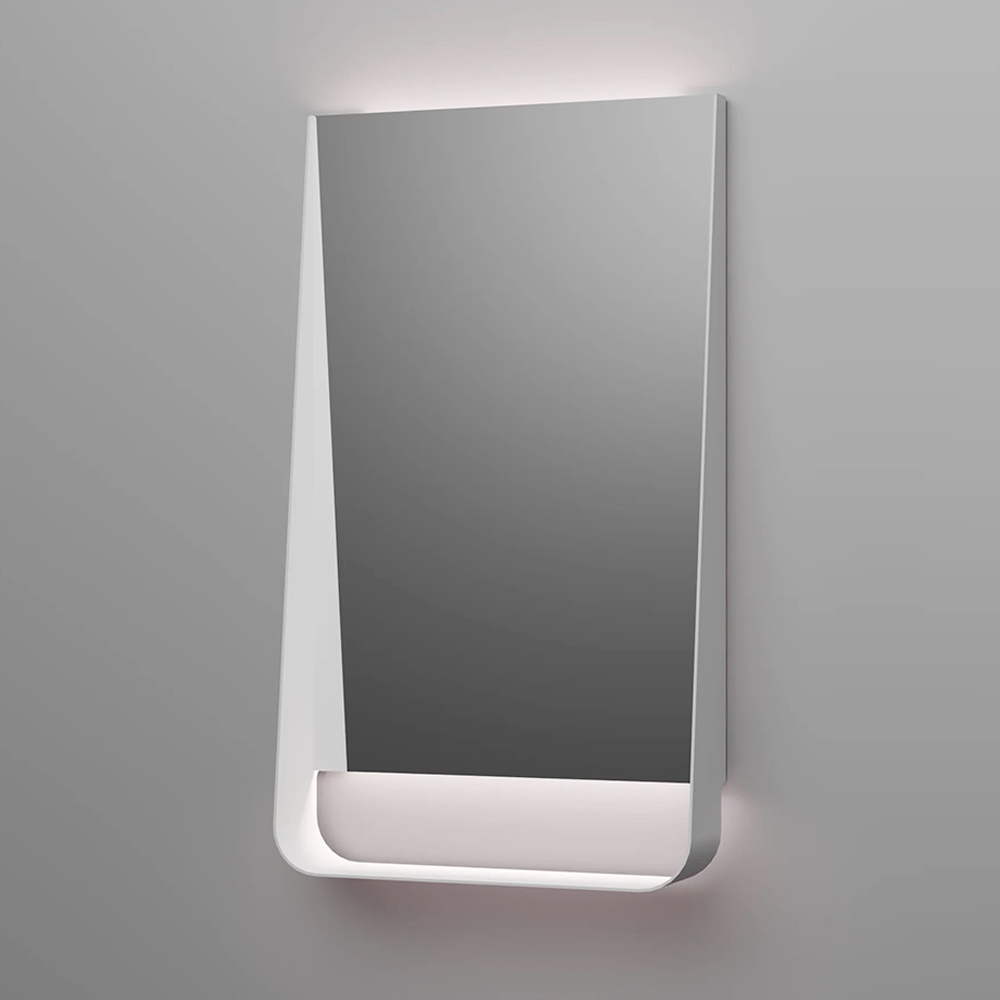 Die Komposition wird durch den Spiegel mit schwarzem Rahmen und LED- Beleuchtung vervollständigt, der für eine funktionale und stimmungsvolle Beleuchtung sorgt und dazu beiträgt, eine einladende und elegante Atmosphäre zu schaffen.
