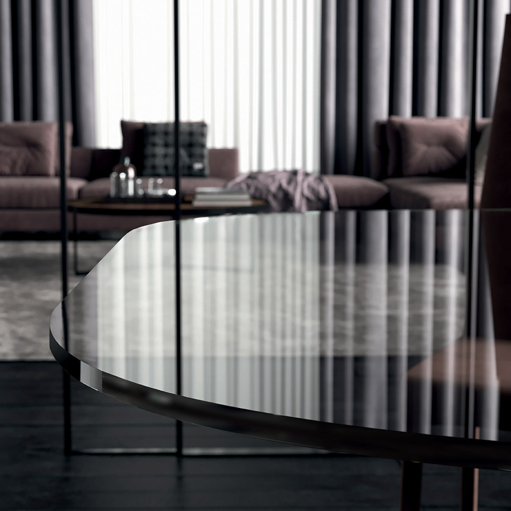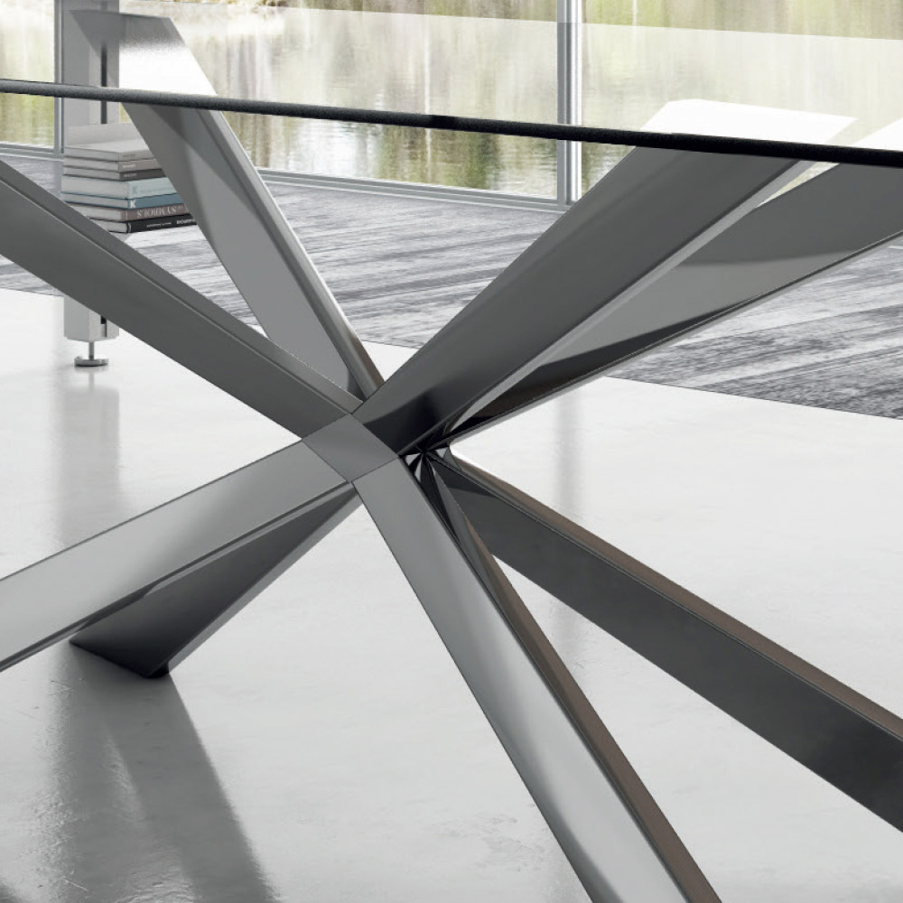 Tonnenförmiger Esstisch aus Glas und Stahl, hergestellt in Italien – Cave