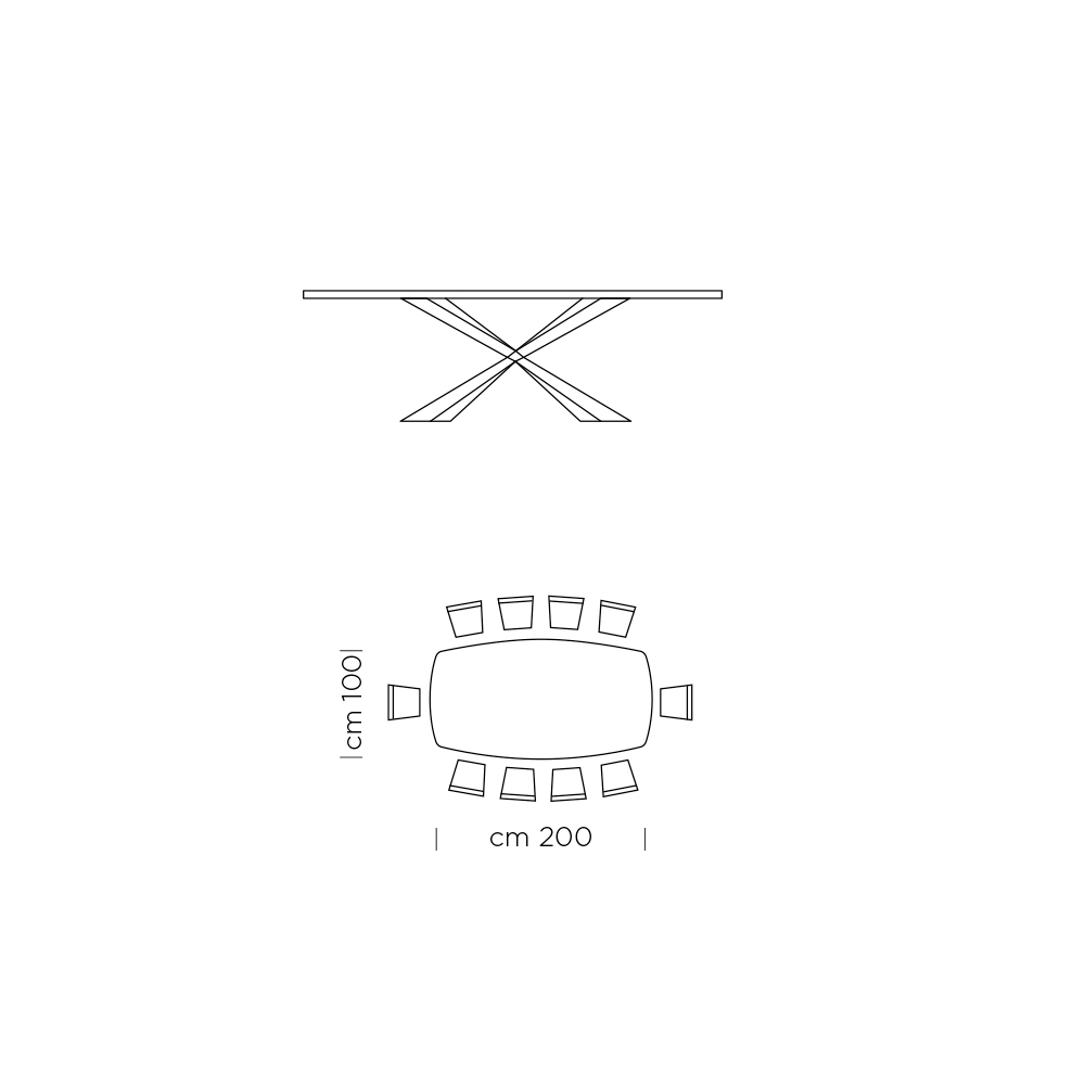 • L 200 x T 100 x H 72,7 cm (10 Sitzplätze);