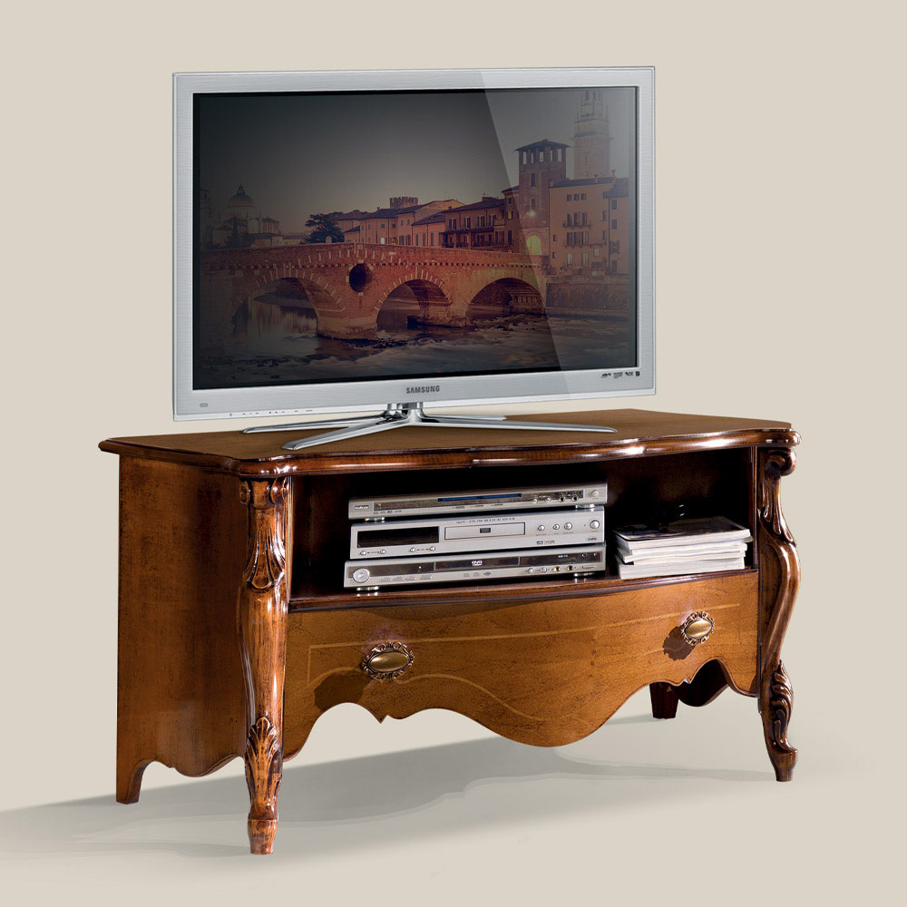 TV-Ständer für das Wohnzimmerim zeitlos klassischen Stil, aus Holz mit Bassano-Walnuss-Finish.Dieses Stück verfügt außerdem über eine praktische Schublade und ein Fach. Ein einzigartiges und raffiniertes Accessoire, vollständig in Italien von erfahrenen Handwerksmeistern hergestellt, Meistern der Kunst, die jedes Stück mit Geschick und Sinn für Eleganz fertigstellen. Die Produktion erfolgt aus hochwertigen Materialien und die Verarbeitung erfolgt vonHand mit größter Sorgfalt und Professionalität, die Produkte Made in Italy auszeichnet.
