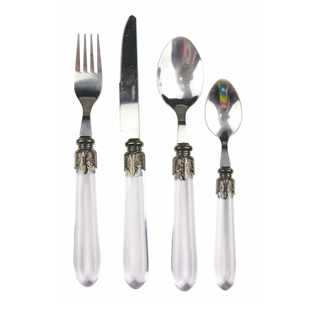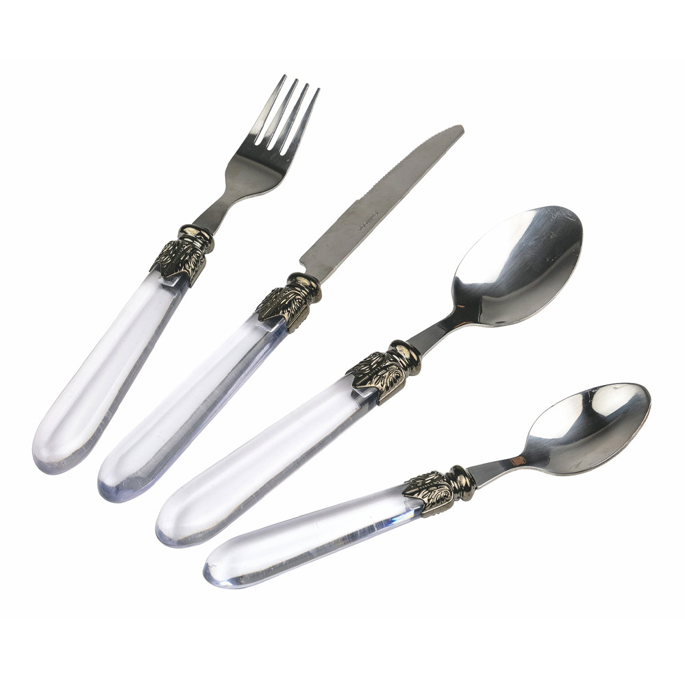 Besteckset aus Stahl und transparentem Kunststoffgriff, 24 teilig.