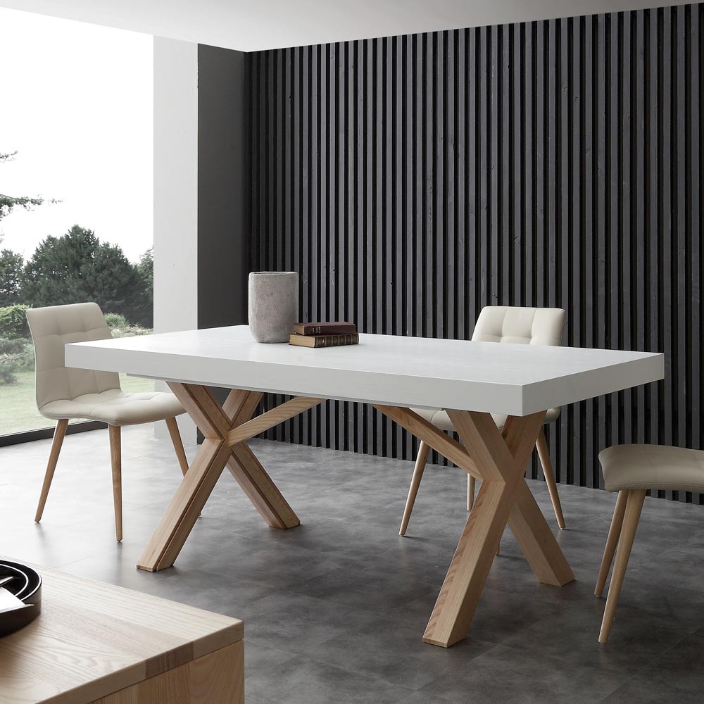Gestell aus natürlichen Massivholz. Der Tisch ist perfekt um Familie und Freunde unterzubringen. Rico kann in 3 Schritte verlängert werden: 240 , 300 cm oder 360 cm Länge.