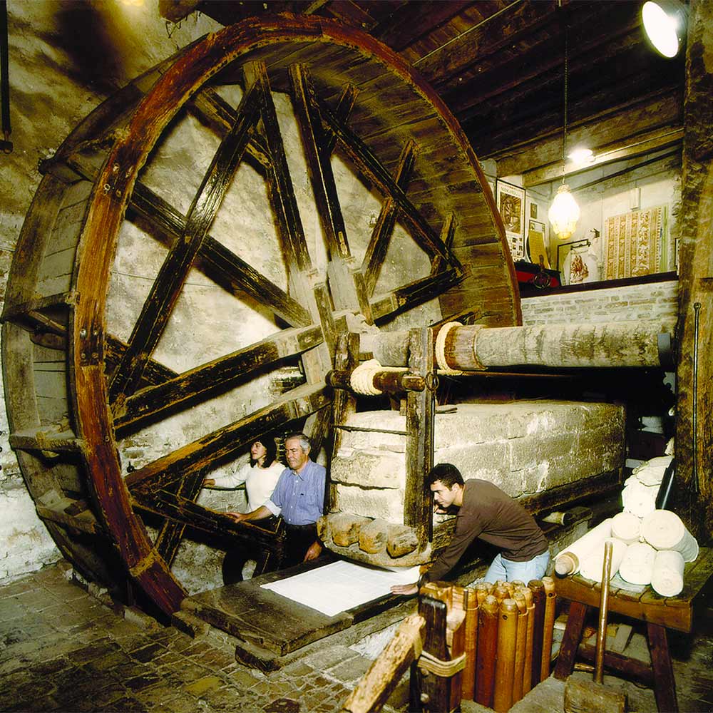 Die Antica Stamperia Marchi war nach wie vor die letzte Werkstatt, in der diese Drucke mit der Manganotechnik hergestellt wurden, einer alten Druckmaschine, die die Leinwand behandeln, bügeln und glätten kann, um sie glänzend und kompakt zu machen. Ein einzigartiges Verfahren, italienische Handwerkskunst, das bis ins kleinste Detail mit Werkzeugen der über hundertjährigen Tradition mit Techniken geheilt wurde, die von Generation zu Generation von der Familie Marchi weitergegeben wurden.