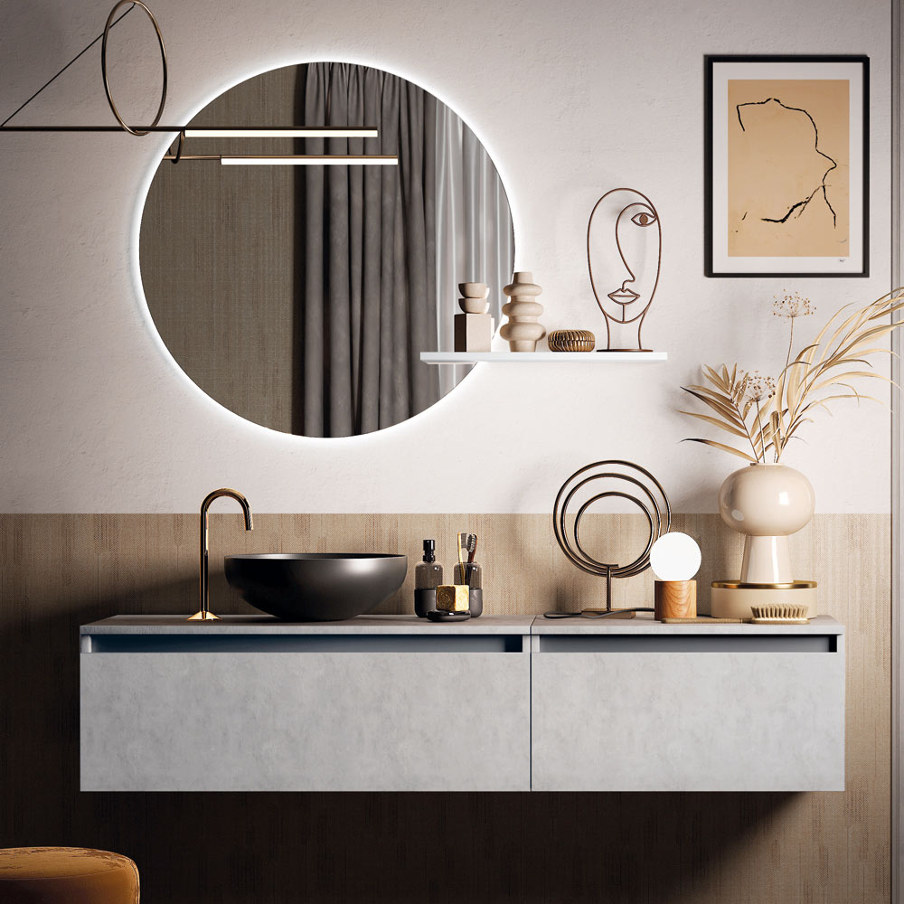 Die wertvollen Materialien und raffinierten Lösungen verbessern die häusliche Umgebung und betonen deren Funktionalität und sensorisches Vergnügen. Die brandneuen Linien bewegen sich zwischen strengen geometrischen Formen und einem viel originelleren Raummanagement und gestalten immer eine geordnete Umgebungwo man auf sich selbst aufpasst.