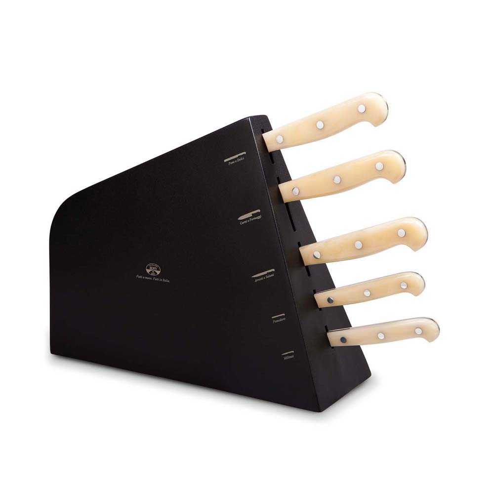 Unser meistverkauftes Produkt ist sicherlich Convivio Nuovo, ein 1997 geborenes Tischmesser, das das Ergebnis einer Retro-Innovation eines für Scarperia typischen alten Messers (1930er-1900er Jahre) ist. Es zeichnet sich durch eine starke Innovation bei der Verwendung von Materialien und ein innovatives Design aus, das die Verwendung angenehm macht.