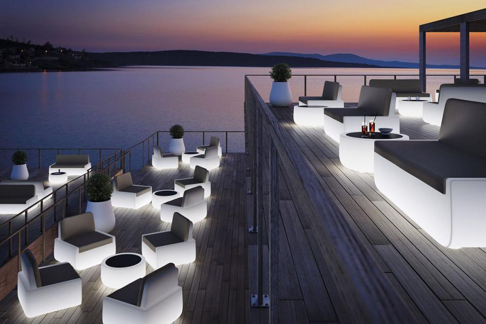 These furniture or accessories are mostly made of polyethylene, a very resistant and versatile material, made translucent, to allow the light to pass to the led inside, thus creating a diffused and atmospheric light.
