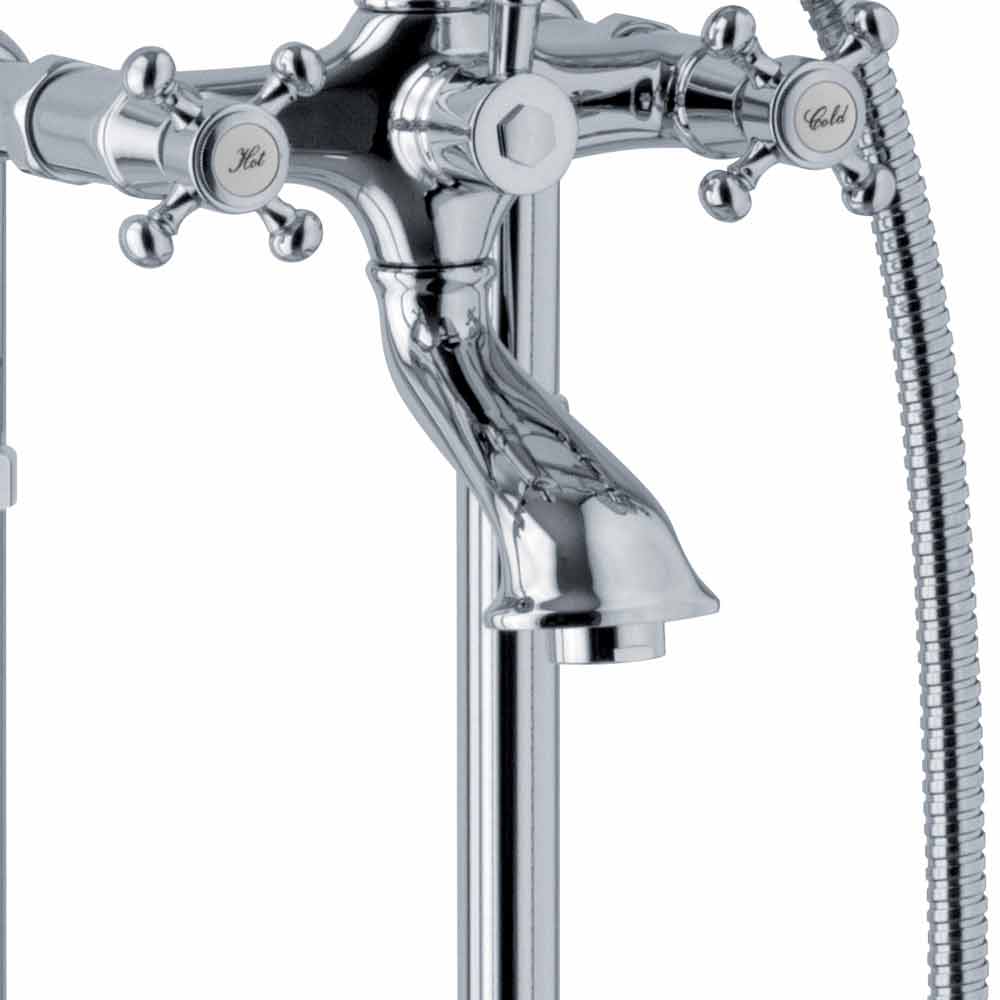 Bademischer auf Bodensäulen mit Messingdusche und 1500 mm flexiblem Schlauch.