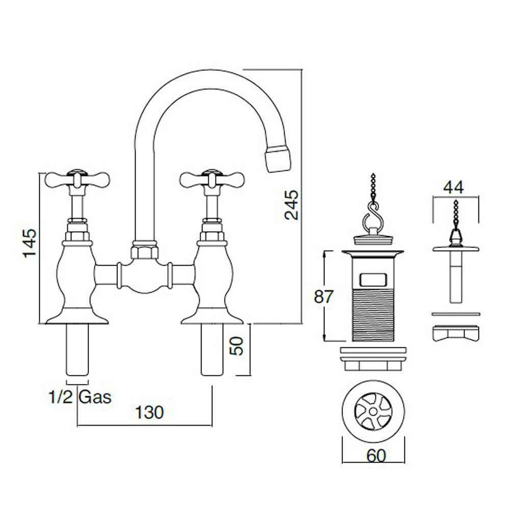 Brückenarmaturen für Waschbecken aus klassischem handgefertigtem Messing - Fioretta