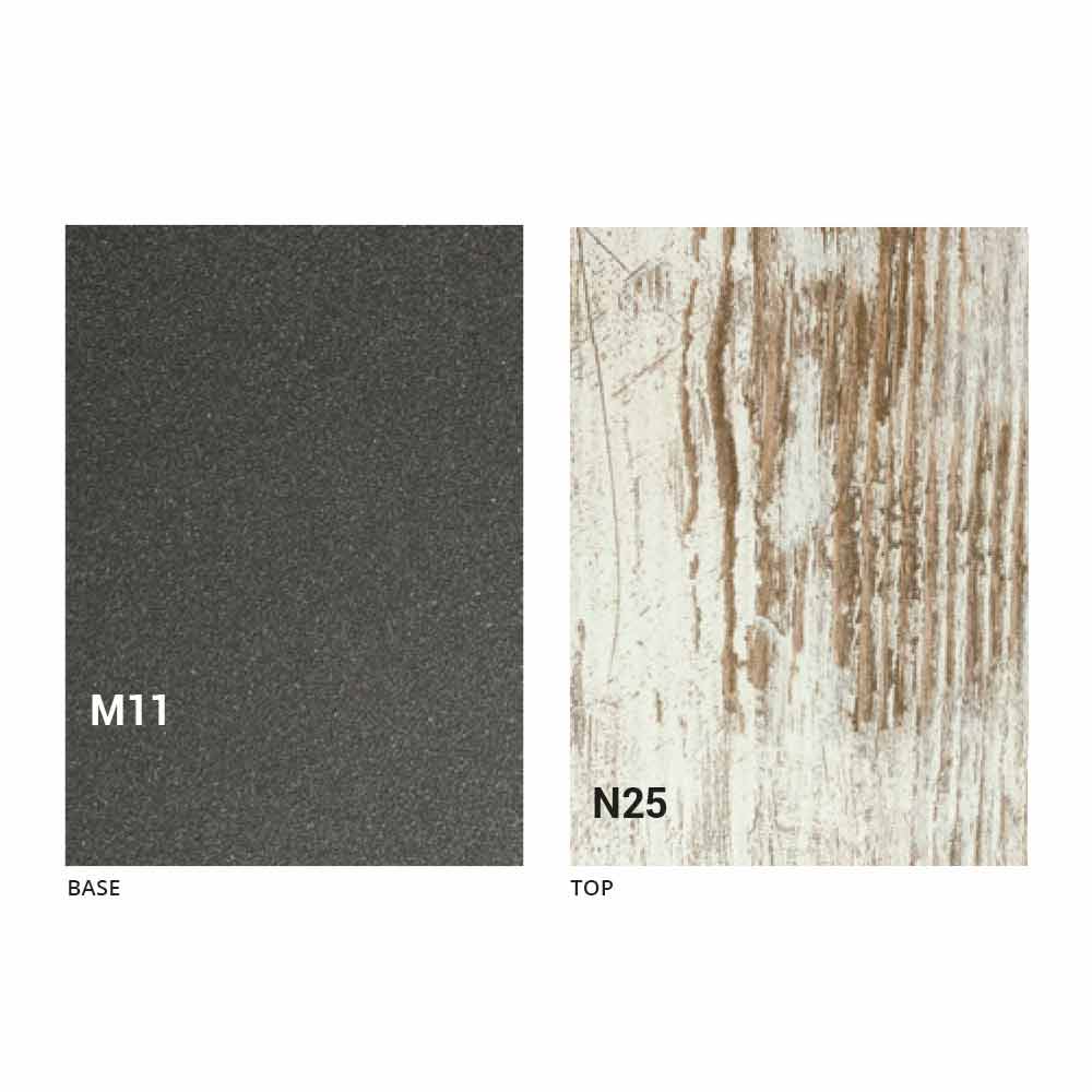 Tischplatte und Untergestell können mit verschiedenen Musteroberflächen individuell gestaltet werden. Für weitere Informationen kontaktieren Sie uns über das Formular „ Informationen anfordern “.