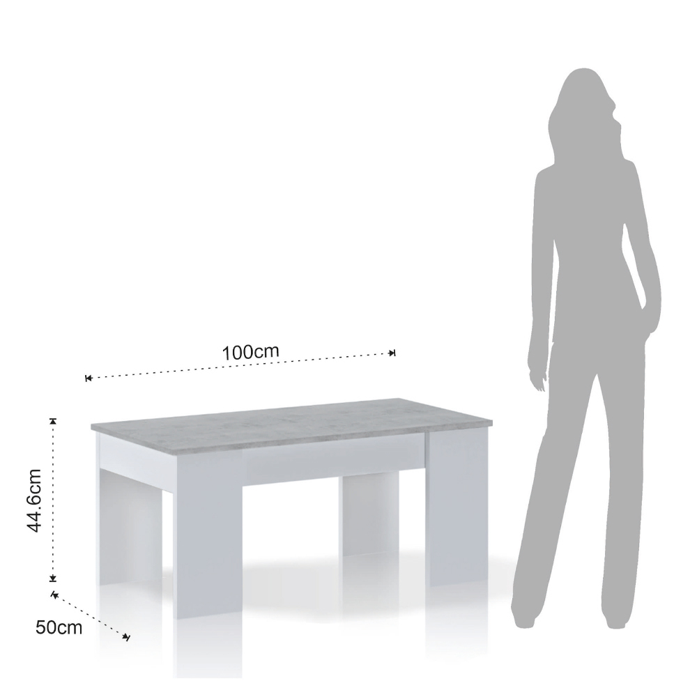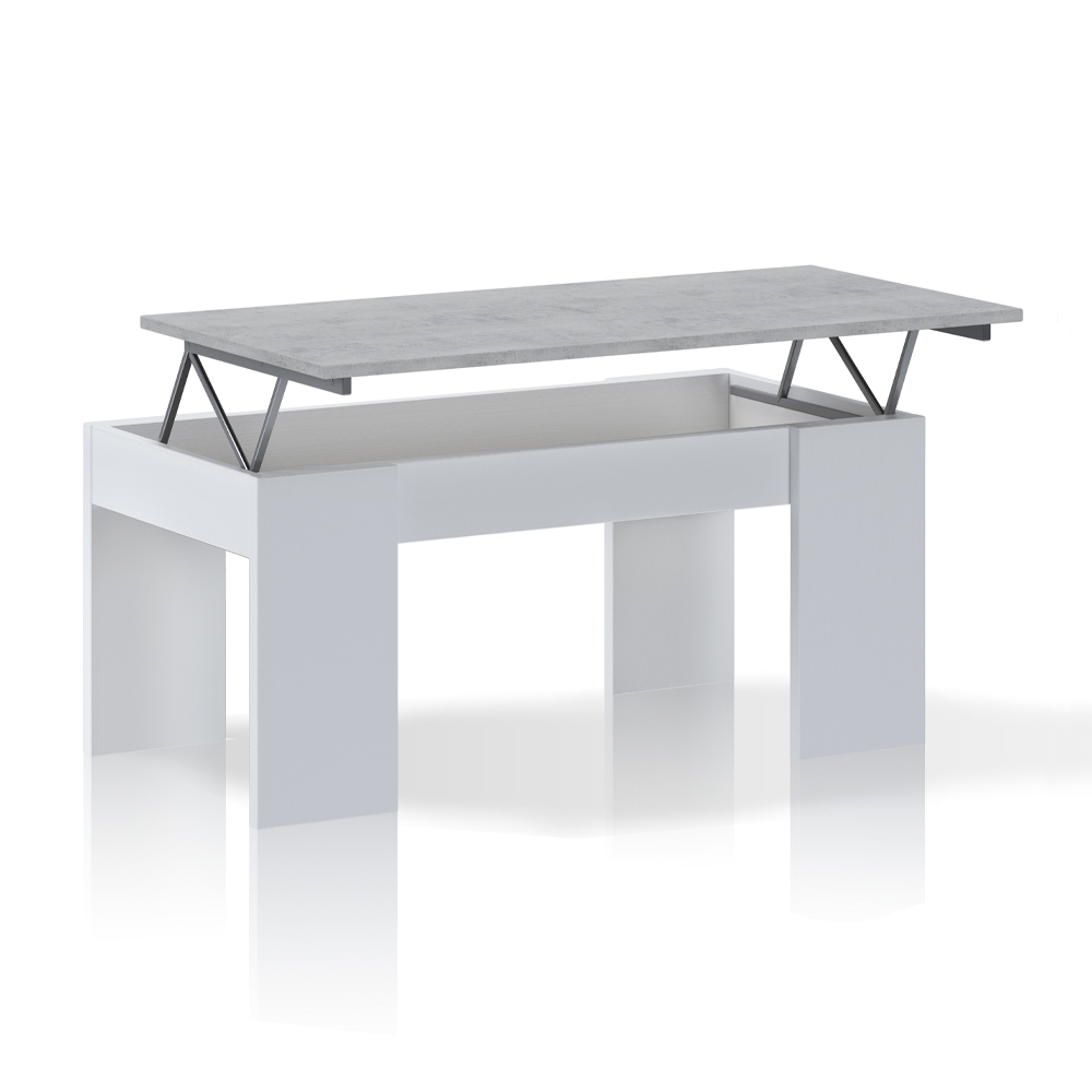 Wohnzimmer-Couchtisch mit Behälter , anhebbarer Tischplatte H. 12 cm , mit Melaminbeschichtung in Cemento-Optik und Struktur aus ökologischen Spanplatten mit offenporiger Oberfläche aus weißer Lärche. Dieser Artikel mit modernem und raffiniertem Stil eignet sich perfekt zur Vervollständigung der Einrichtung von Wohnzimmern, Wohnbereichen und Objektumgebungen und garantiert Funktionalität und Zweckmäßigkeit . Die für die Herstellung ausgewählten Materialien sind von höchster Qualität, um dem Kunden ein widerstandsfähiges und langlebiges Produkt zu bieten.