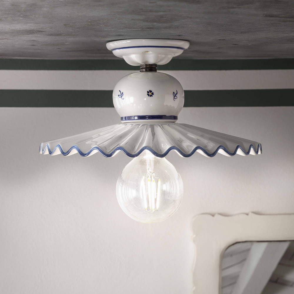 NB : Die Glühbirne ist nicht im Lieferumfang enthalten. Die Dekorationen können individuell angepasst werden, für weitere Informationen kontaktieren Sie uns, indem Sie das entsprechende Formular ausfüllen. Da es sich um handgefertigte Artikel handelt, können die tatsächlichen Farben von den auf den Fotos gezeigten abweichen.https://www.viadurini.de//data/prod/img/plafoniera-country-ceramica-artigianale-decorata-a-mano-2-misure-roma.jpg263.36InStockVintage DeckenleuchtenFerroluce000.02021-12-22 11:35:42Made in Italy