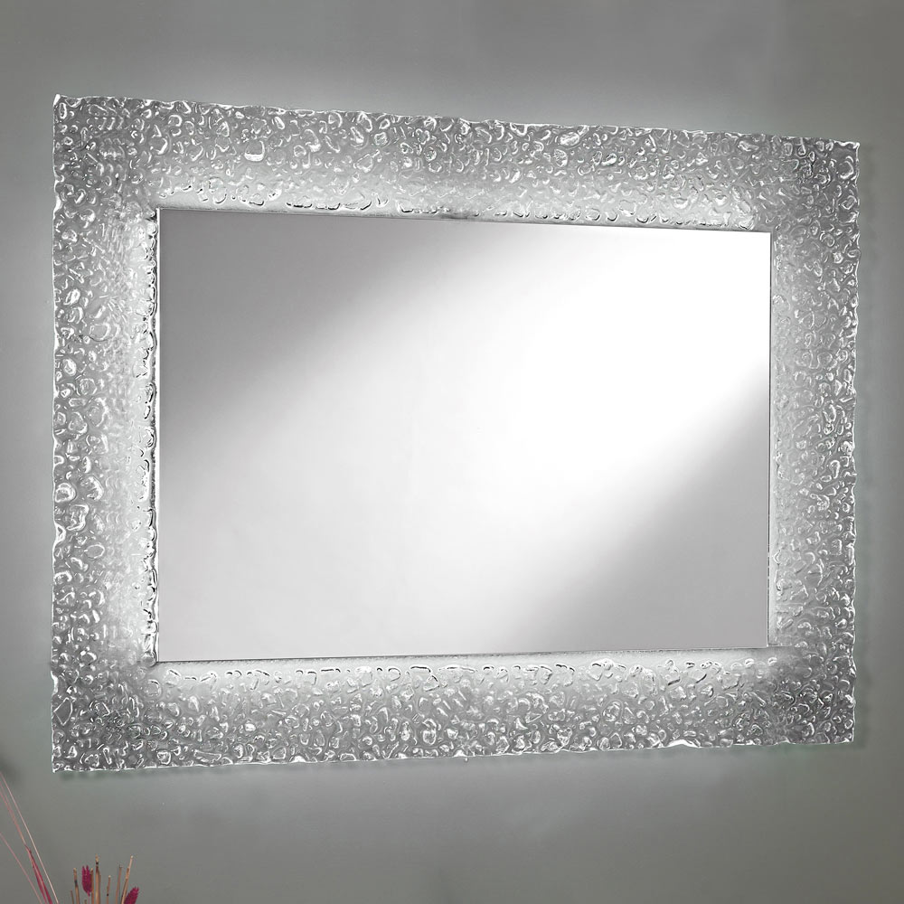 Dekorativer Wandspiegel mit geschmolzenem Glasrahmen und integrierter LED-Beleuchtung, hochwertige Qualität made in Italy.