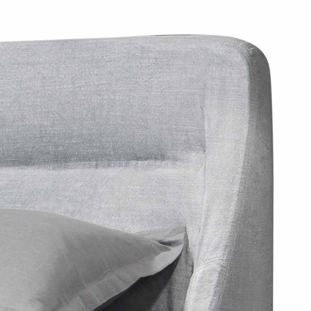 Sleepway verfügt über ein Kopfteil und einen Bettrahmen aus Holz, die mit Polyurethan-Gummi und einer Polyesterfaserauskleidung überzogen sind. Graue Stoffpolsterung. Untergestell mit Buchenholzlatten.