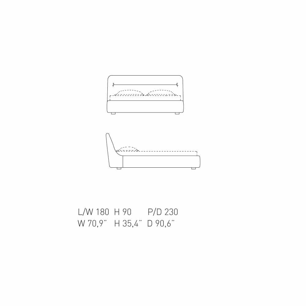 Maße: H 90 x B 180 x T 230 cm Matratze 160x200 cm