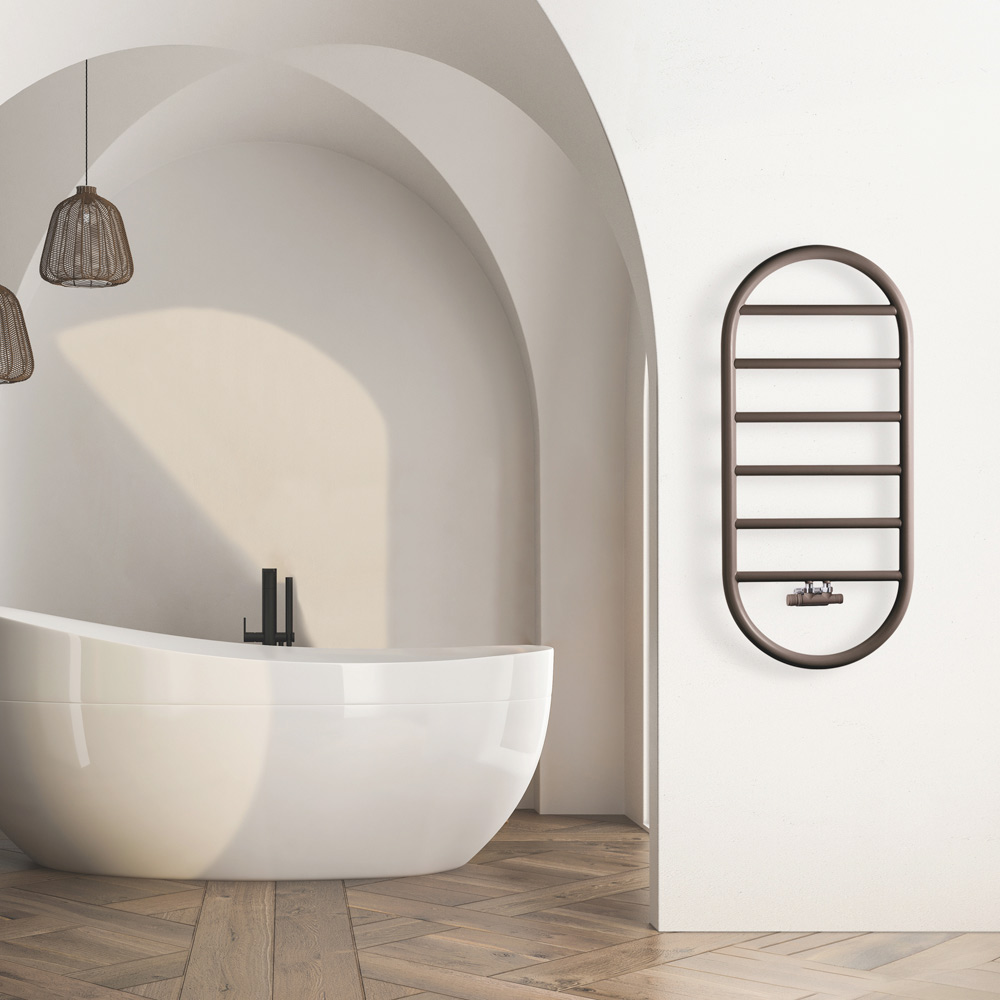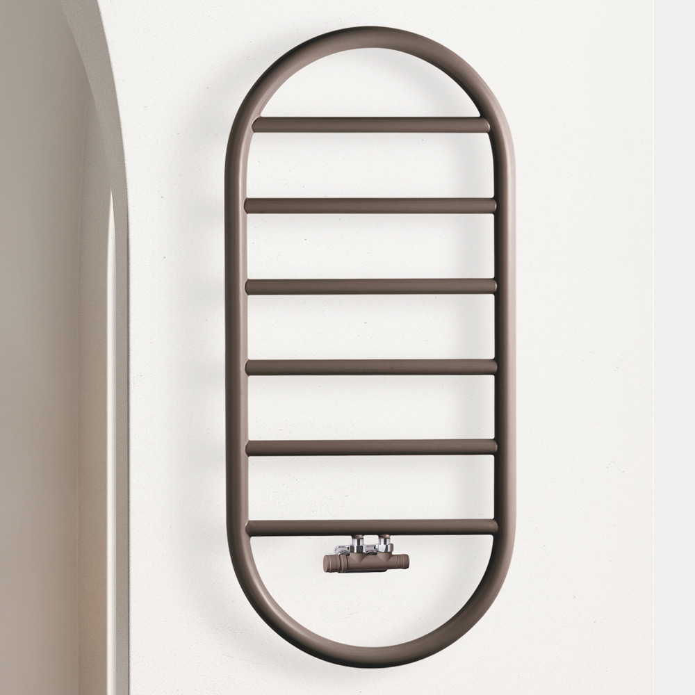 Dieser anspruchsvolle Stahlheizkörper zeichnet sich durch ein markantes ovales Design aus, ergänzt durch horizontale Balken, die seine Eleganz unterstreichen und ihn in jeder Umgebung, in der er aufgestellt wird, zu einem stilvollen Blickfang machen. Mit seiner Oberfläche dient dieser Heizkörper nicht nur als effiziente Wärmequelle, sondern auch als atemberaubendes Dekorationselement, das Ihren Räumen perfekt einen Hauch von Luxus und Modernität verleiht.