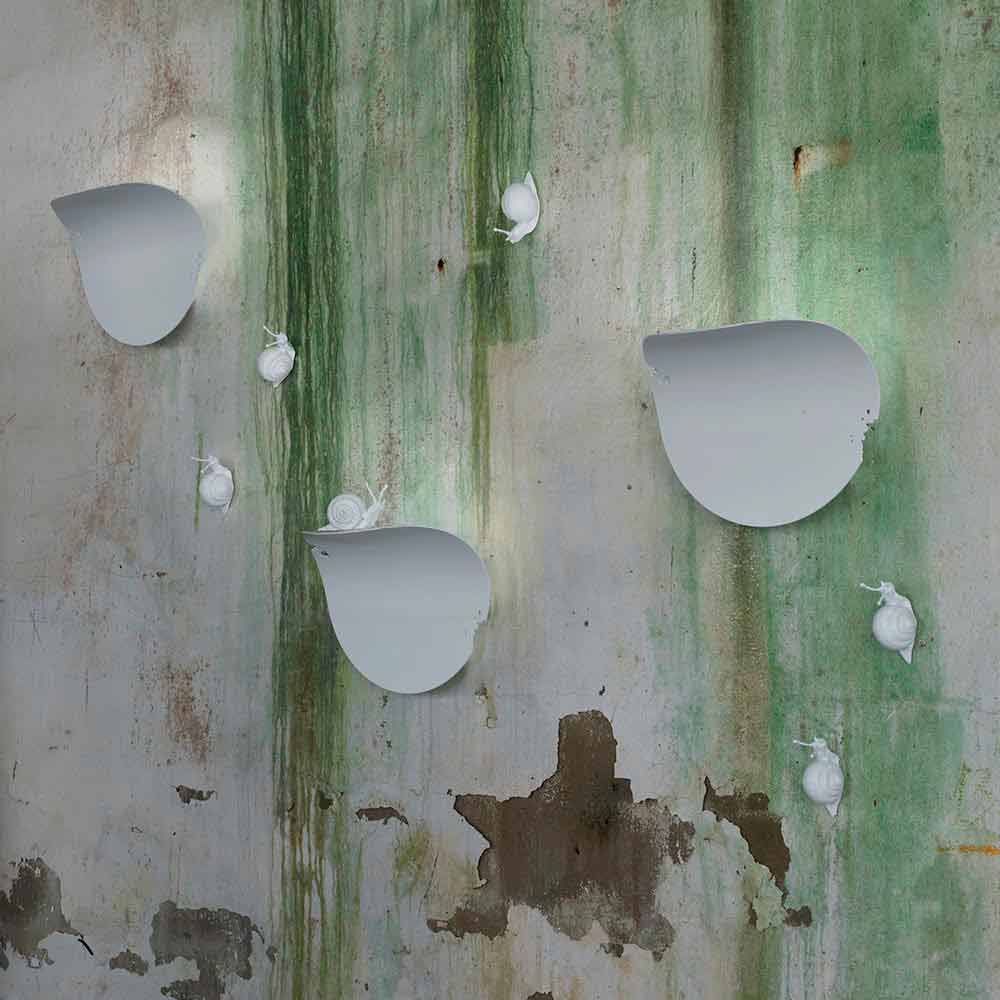 Die Lampe besteht aus weißem Aluminium , während der schneckenförmigen Zubehörteil in undurchsichtigen weißer Keramik, für ein völlig italienisches Design, die durch unkonventionelle Experimentier- und kontinuierliche Forschung zwischen Tradition und Moderne, zu überraschen , ist in der Lage, es wagt , und erregt. So können Sie Ihre Gefühle durch eine originelle und persönliche dekorative Verwendung von Licht ausdrücken.