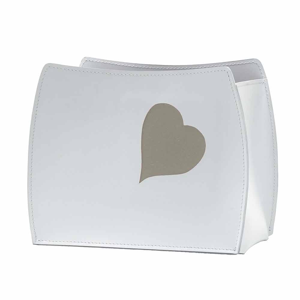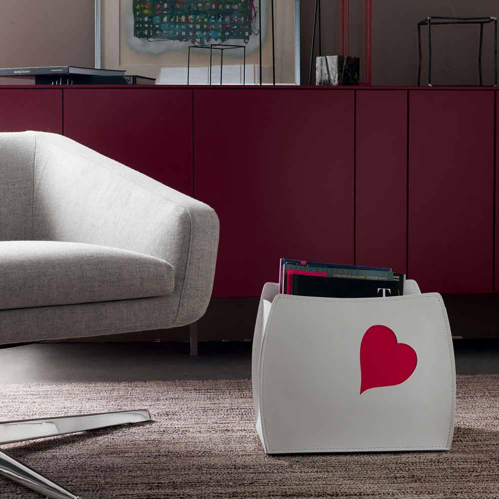 Zeitschriftenständer in 100% Made in Italy Beatrice Leder Dekorieren Sie Ihren Wohnbereich oder das Büro mit diesem funktionalen Möbelstück und Design Zeitungsständer aus regeneriertem Leder und herzförmiger Einlage in Rot- oder Taupefarbe. Sie können die Farbe des Zeitschriftenständers und auch die der Herzdekoration wählen. Die zu seiner Herstellung verwendeten Materialien sind widerstandsfähig und von hoher Qualität. Die Produktion erfolgt in Italien von erfahrenen Handwerksmeistern, die auf Lederverarbeitung spezialisiert sind.