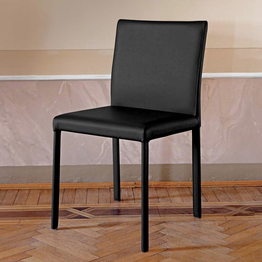 Komplett in Italien hergestellter Esszimmerstuhl , komplett mit schwarzem Leder bezogen. Struktur mit ovalem Bein 30x15 mm. Dank seiner Eleganz , einfachen und weichen Oberflächen eignet es sich perfekt für die geschmackvolle und stilvolle Einrichtung Ihrer Wohn-, Esszimmer- und Küchenräume, ohne auf Funktionalität und Komfort zu verzichten.